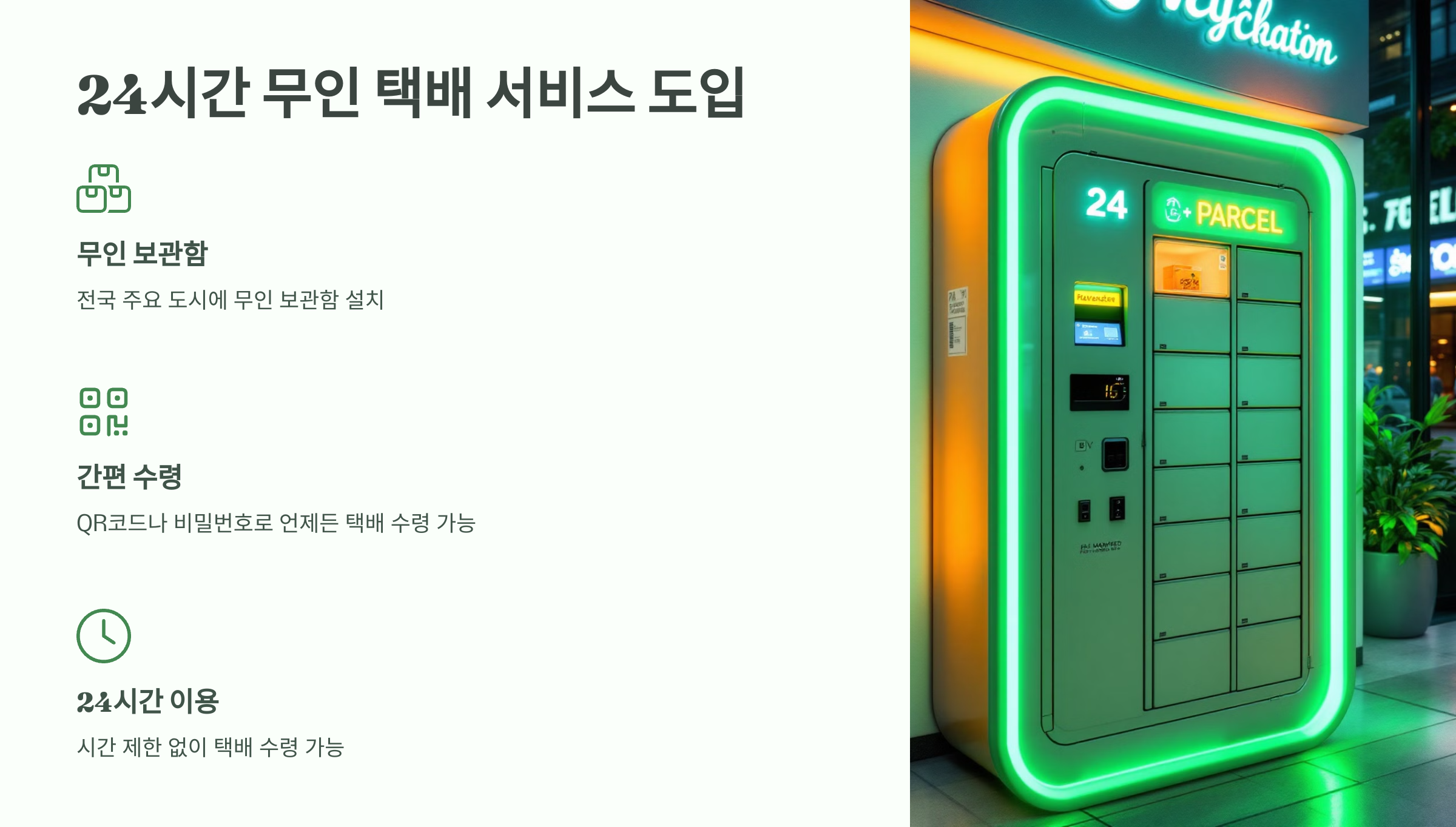 2025년 1월부터 주요 대도시에서 24시간 무인 택배 서비스가 시작됩니다.