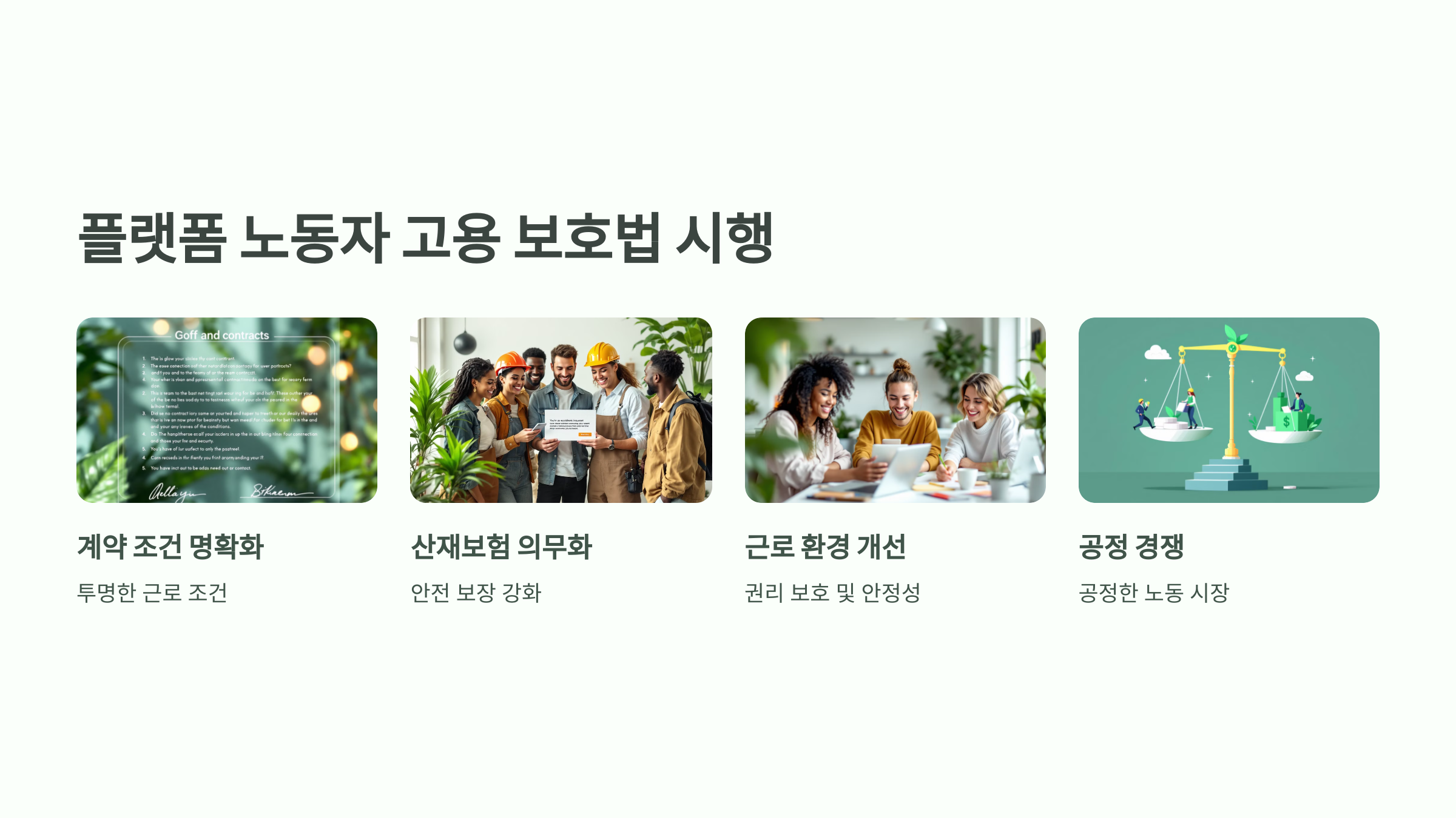 이 법안은 계약 조건 명확화와 산재보험 가입 의무화를 포함하고 있습니다.
