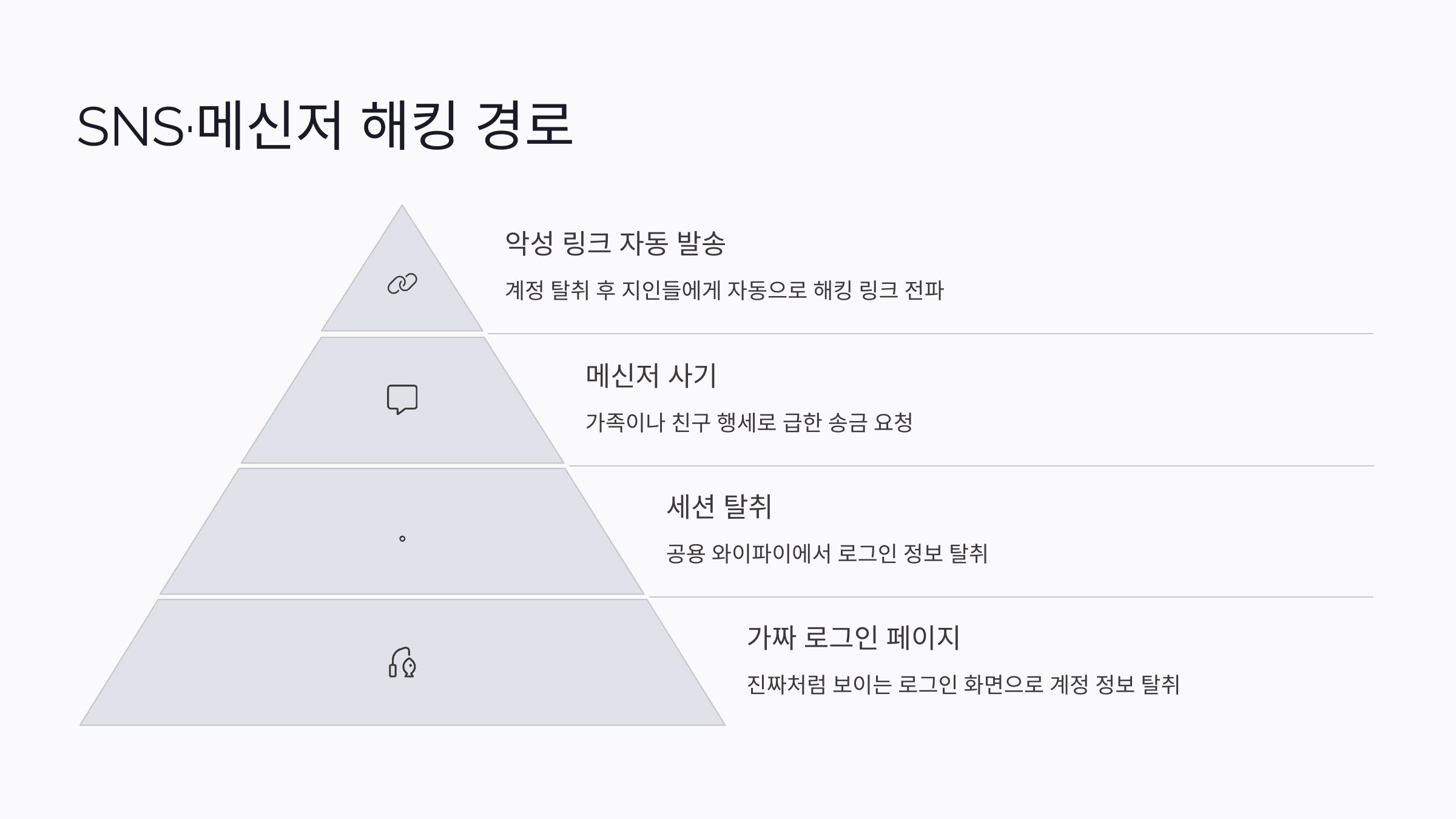 | SNS 계정 탈취 | 가짜 링크 클릭 | 지인 해킹 연쇄 피해 |