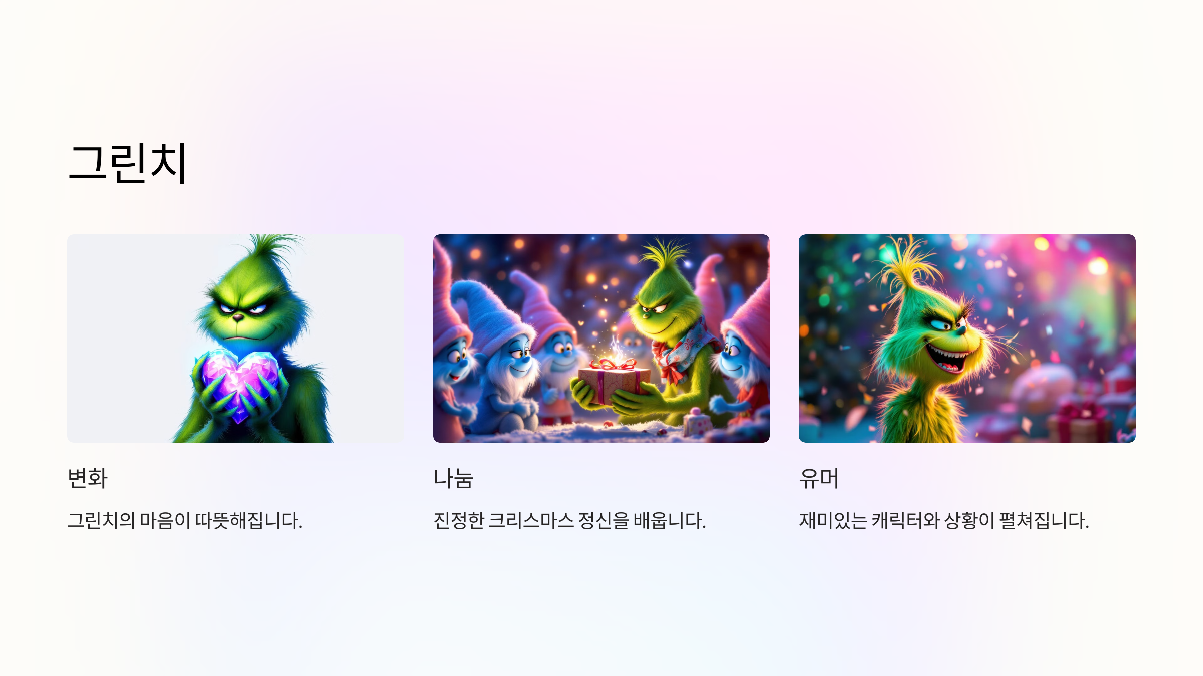 그린치의 이야기는 단순히 재미있는 모험으로 끝나지 않고, 진정한 사랑과 나눔의 의미를 전달합니다.