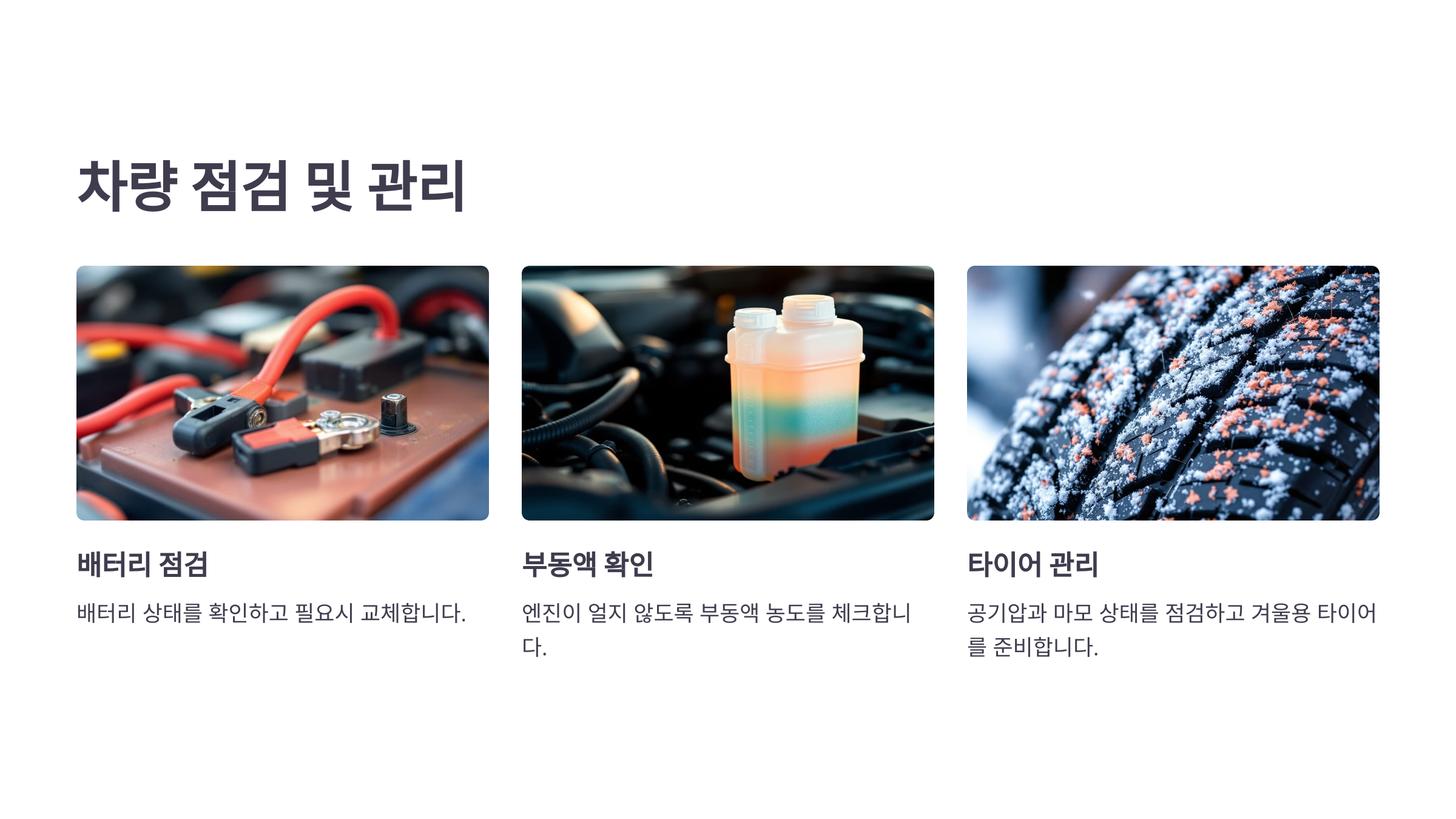 겨울철에는 차량 점검이 필수적입니다. 안전한 운전을 위해 준비하세요.