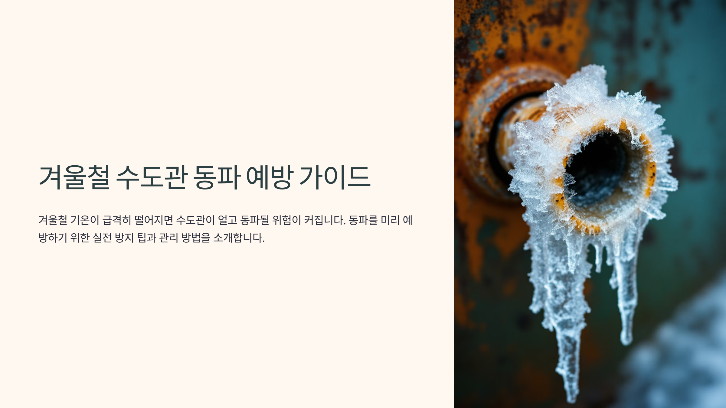 겨울철 기온이 급격히 떨어지면 수도관이 얼고 동파될 위험이 커집니다. 동파를 미리 예방하기 위해 꼭 알아야 할 실전 방지 팁과 관리 방법을 소개합니다.