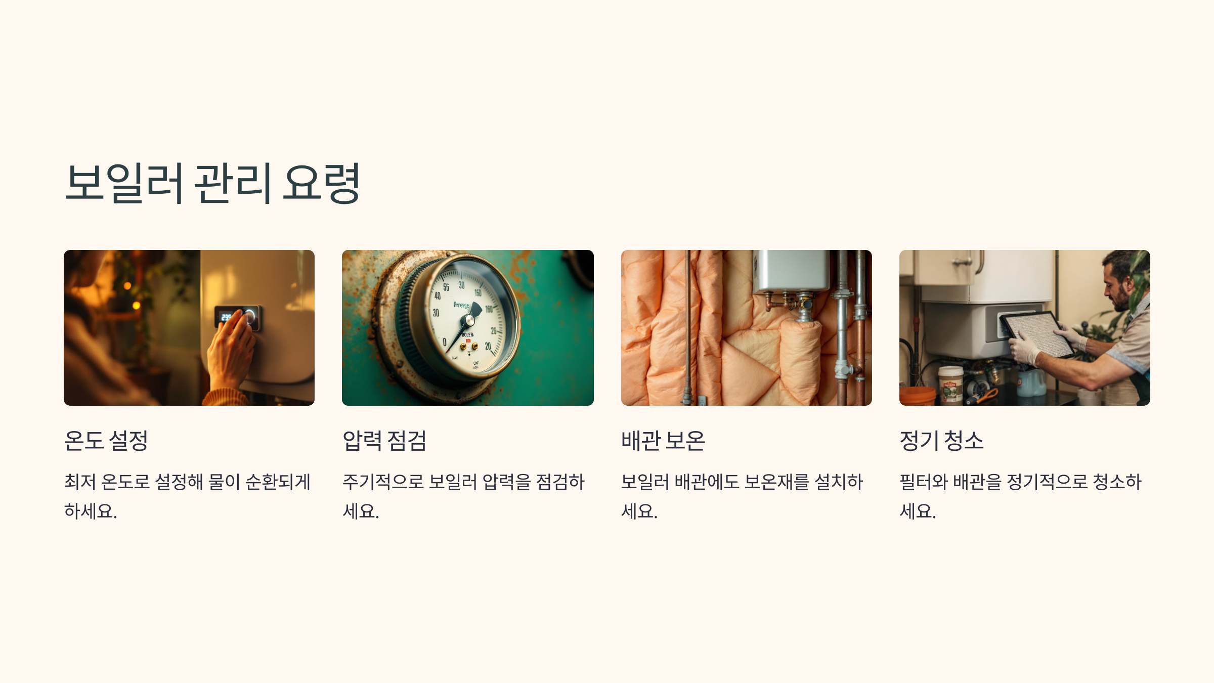 보일러 필터와 배관을 정기적으로 청소해 막힘을 방지하세요.