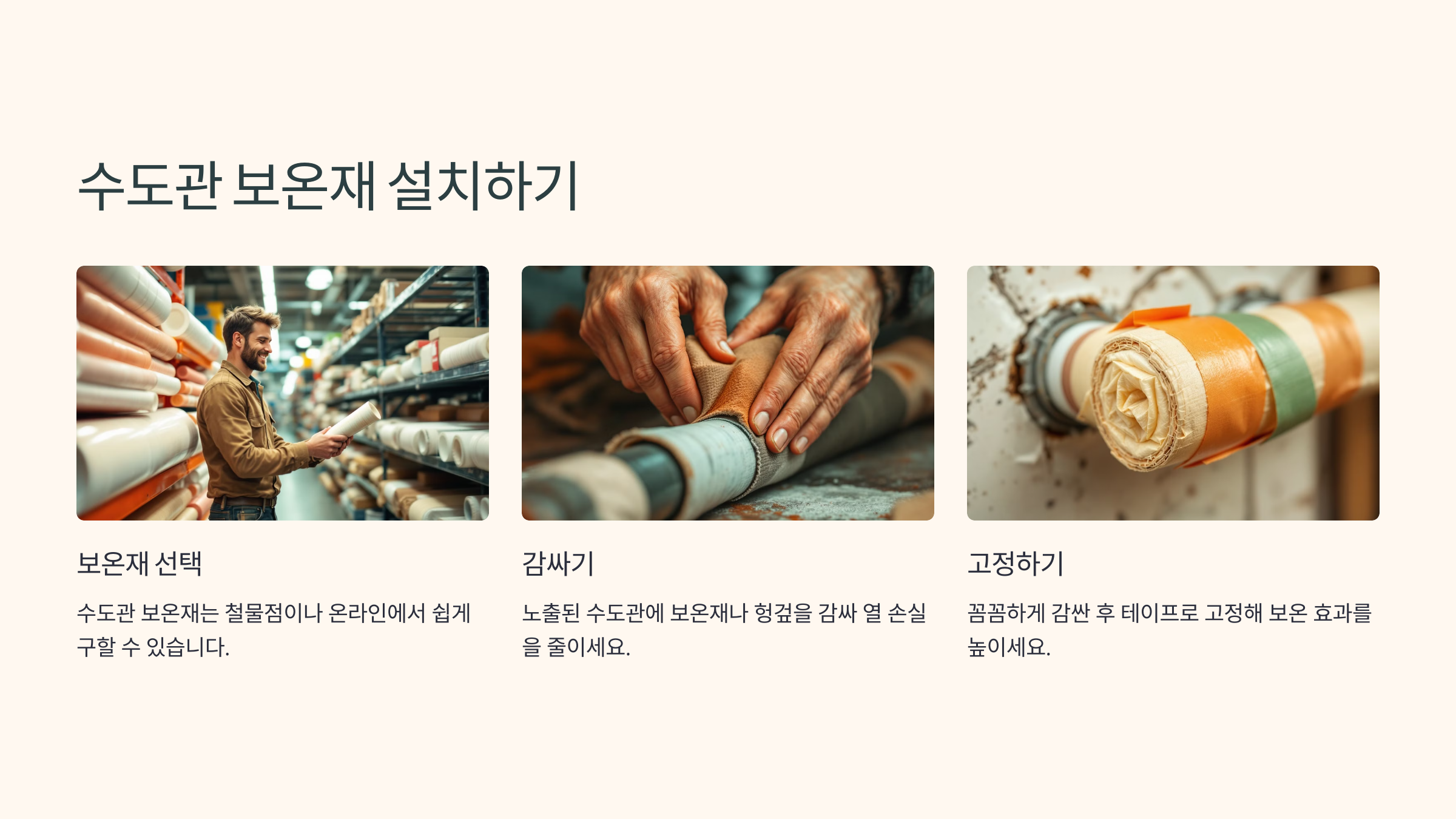 수도관 보온재는 특히 외부 벽면이나 지하실 관에 필수입니다.