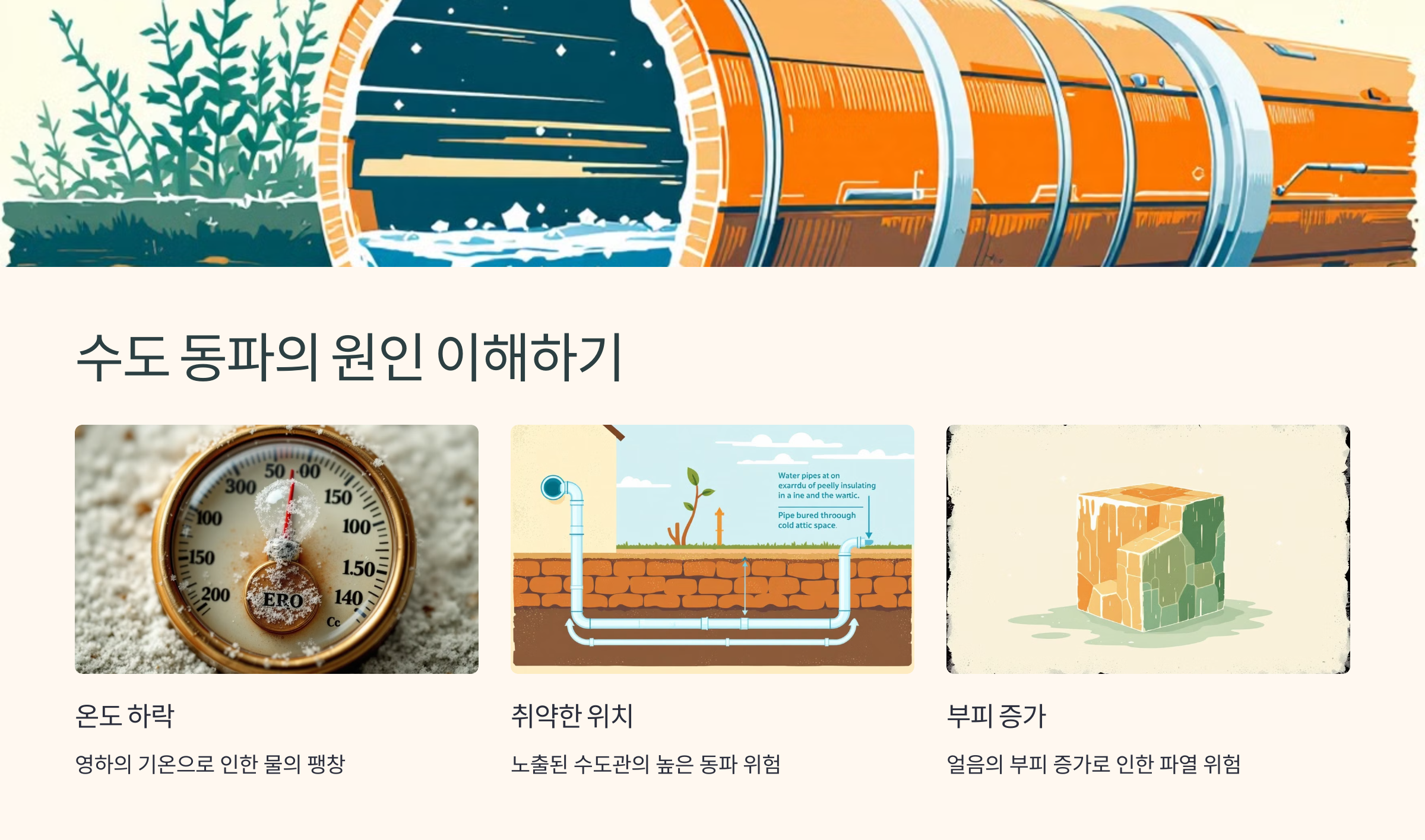 특히 노출된 수도관이나 외부 벽면에 위치한 관은 동파 위험이 큽니다.