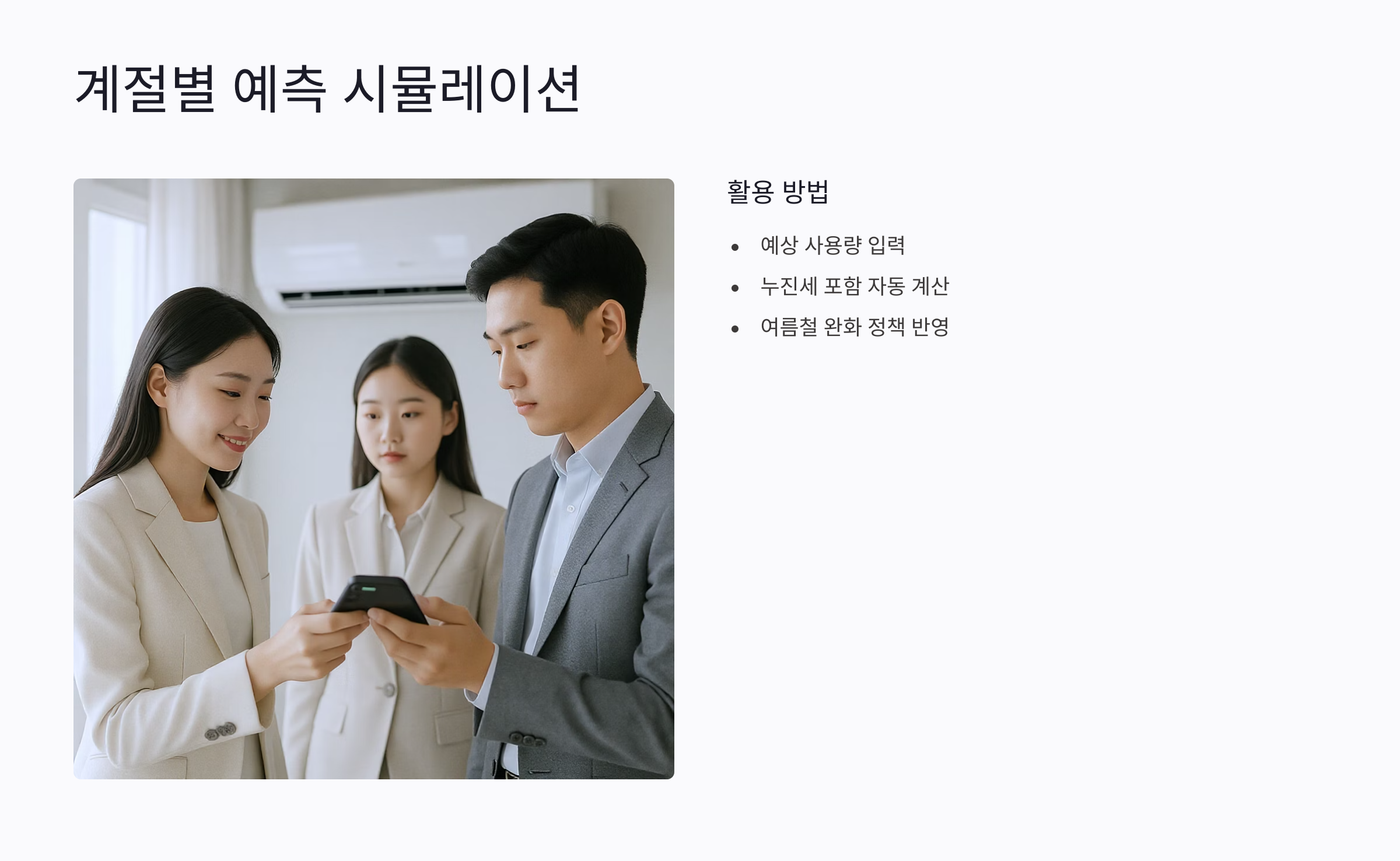 에어컨을 많이 트는 여름, 난방으로 전기가 늘어나는 겨울엔 전기요금이 확 올라요. 이럴 땐 '시뮬레이션 기능'을 써서 예측 요금을 미리 계산해보는 게 좋아요.
