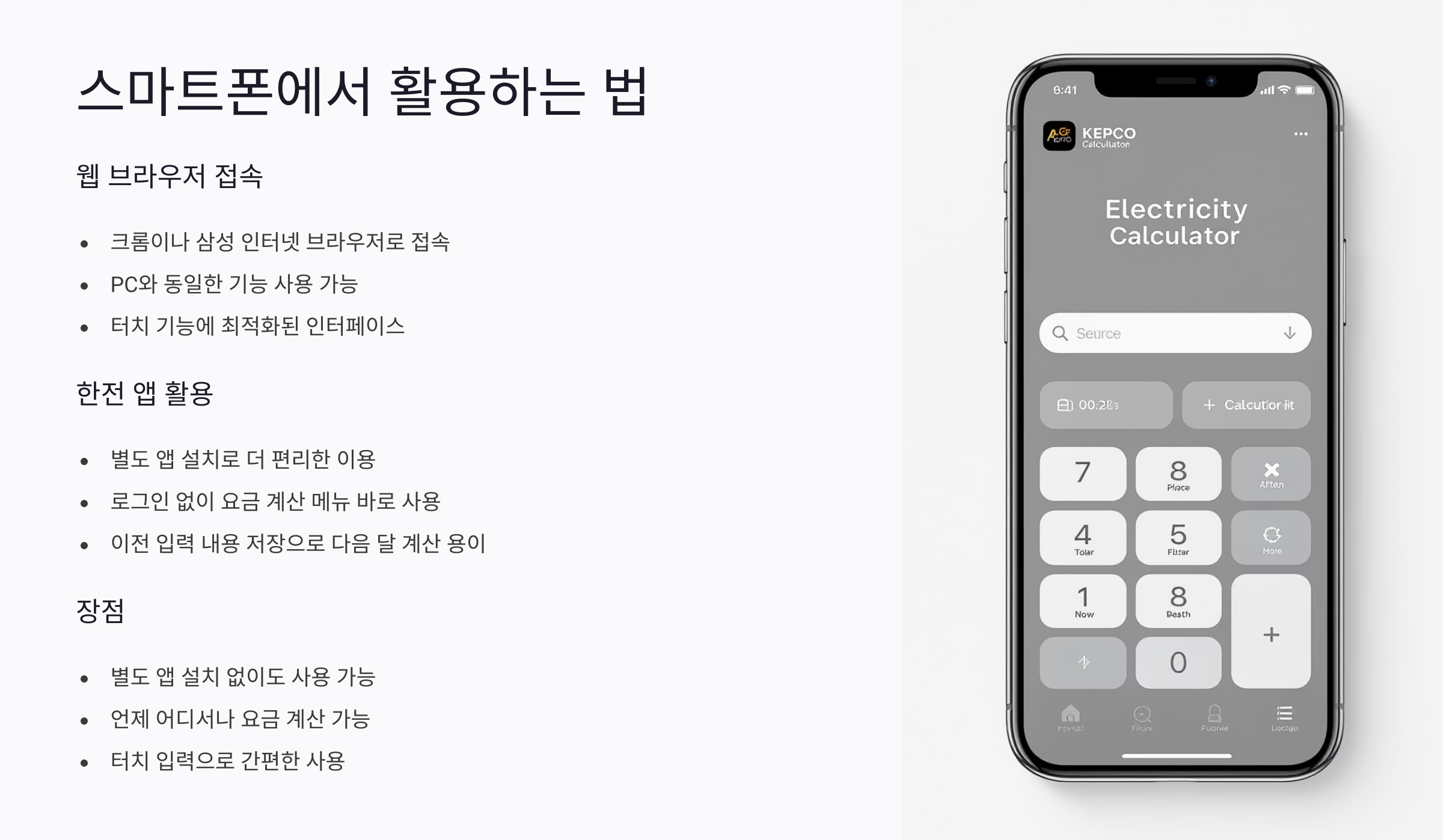 요즘은 대부분 스마트폰으로 요금 계산을 많이 하죠. 한전 계산기는 모바일 환경에서도 아주 잘 작동해요. 별도 앱 설치 없이도 사용 가능하답니다.