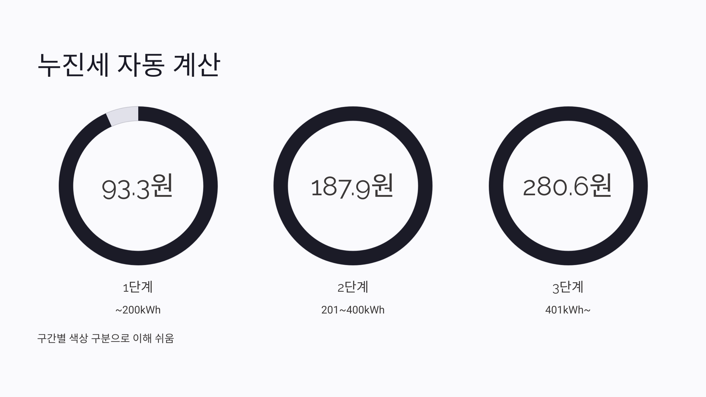 예를 들어 내가 한 달에 350kWh를 사용했다면 1단계와 2단계 요금이 합산되는 구조로 보여줘요. 이게 단순한 것 같지만 수동으로 계산하려면 매우 복잡하죠.
