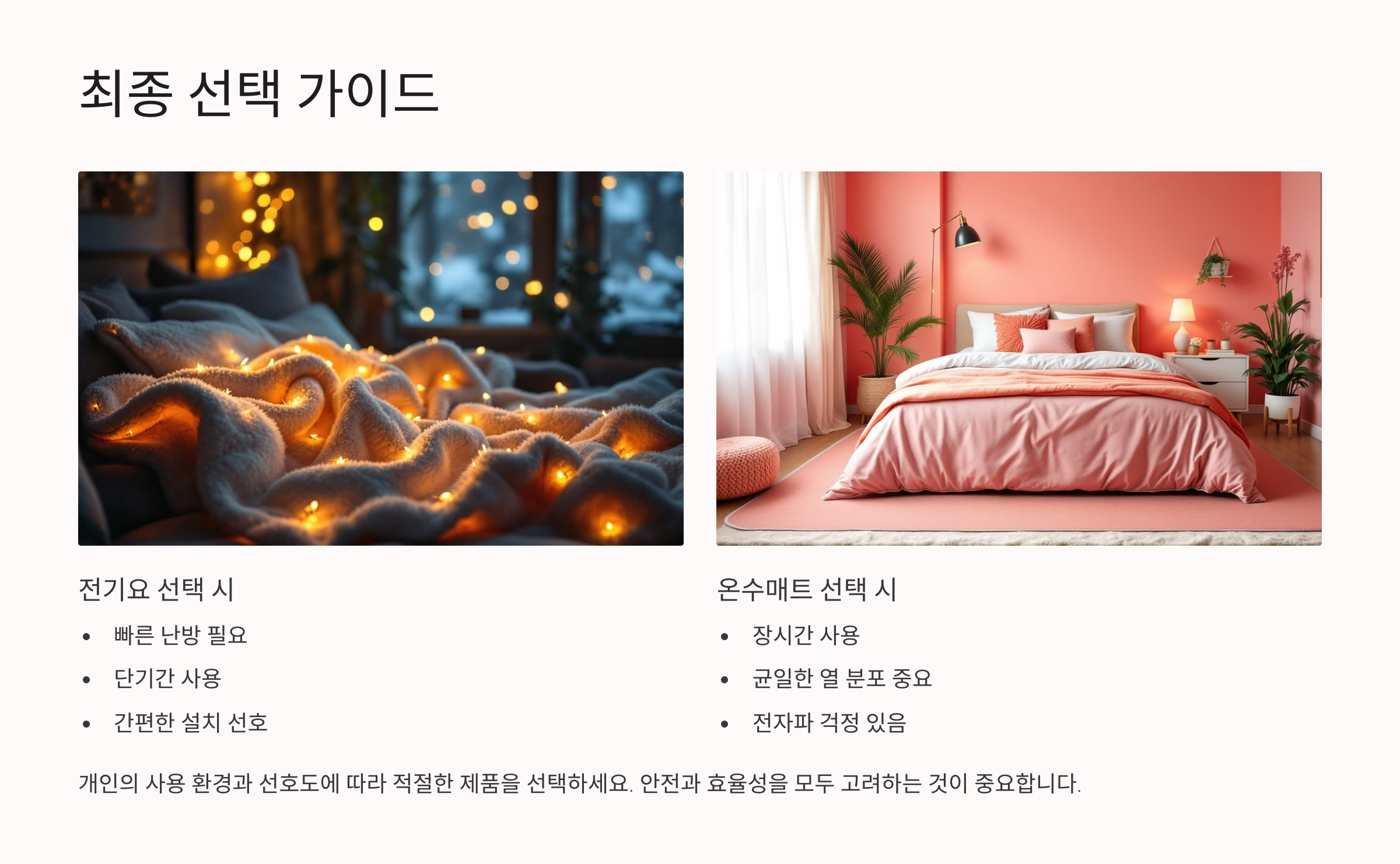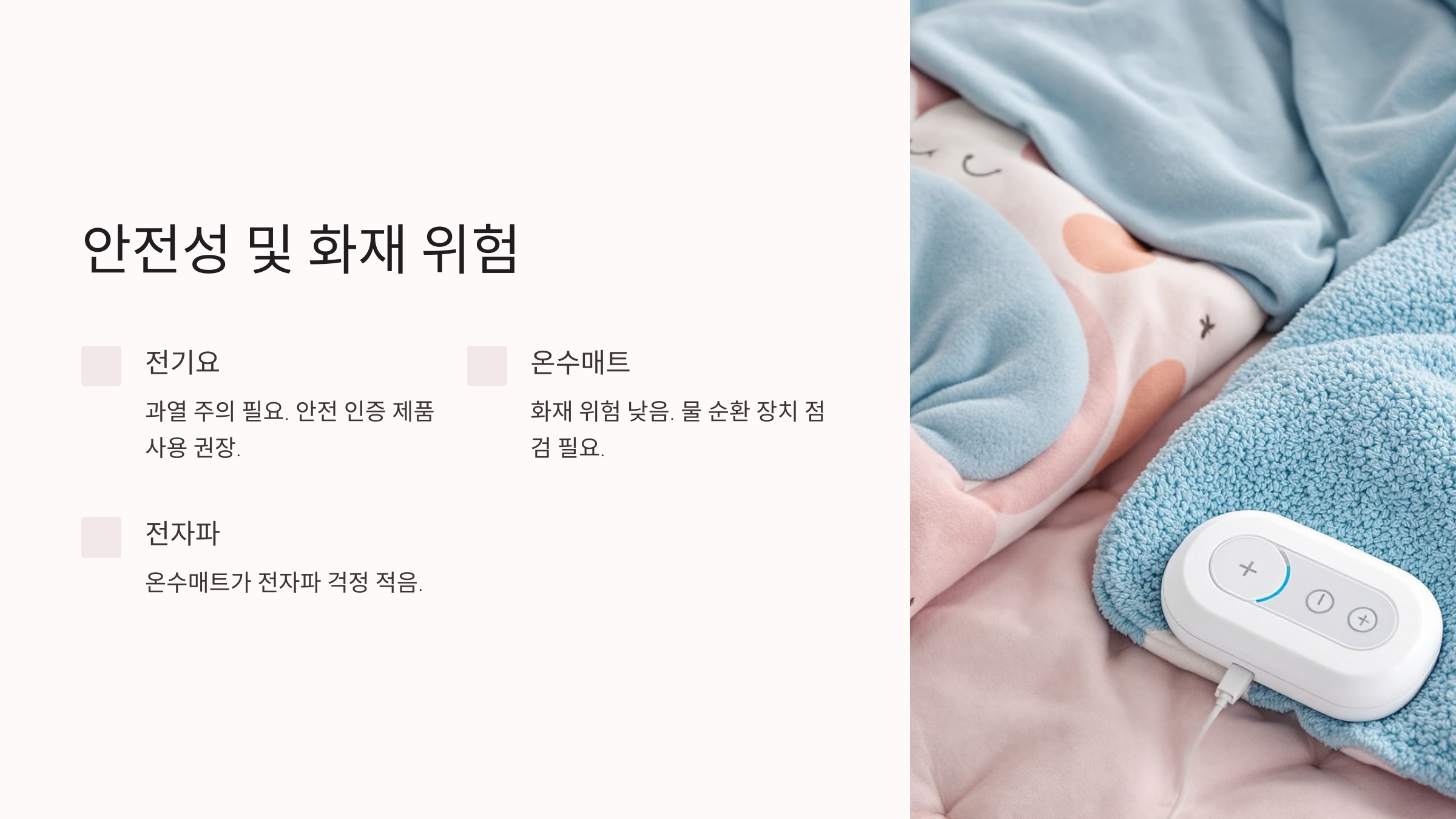 민감하거나 전자파 걱정이 큰 사용자라면 온수매트를 추천합니다.