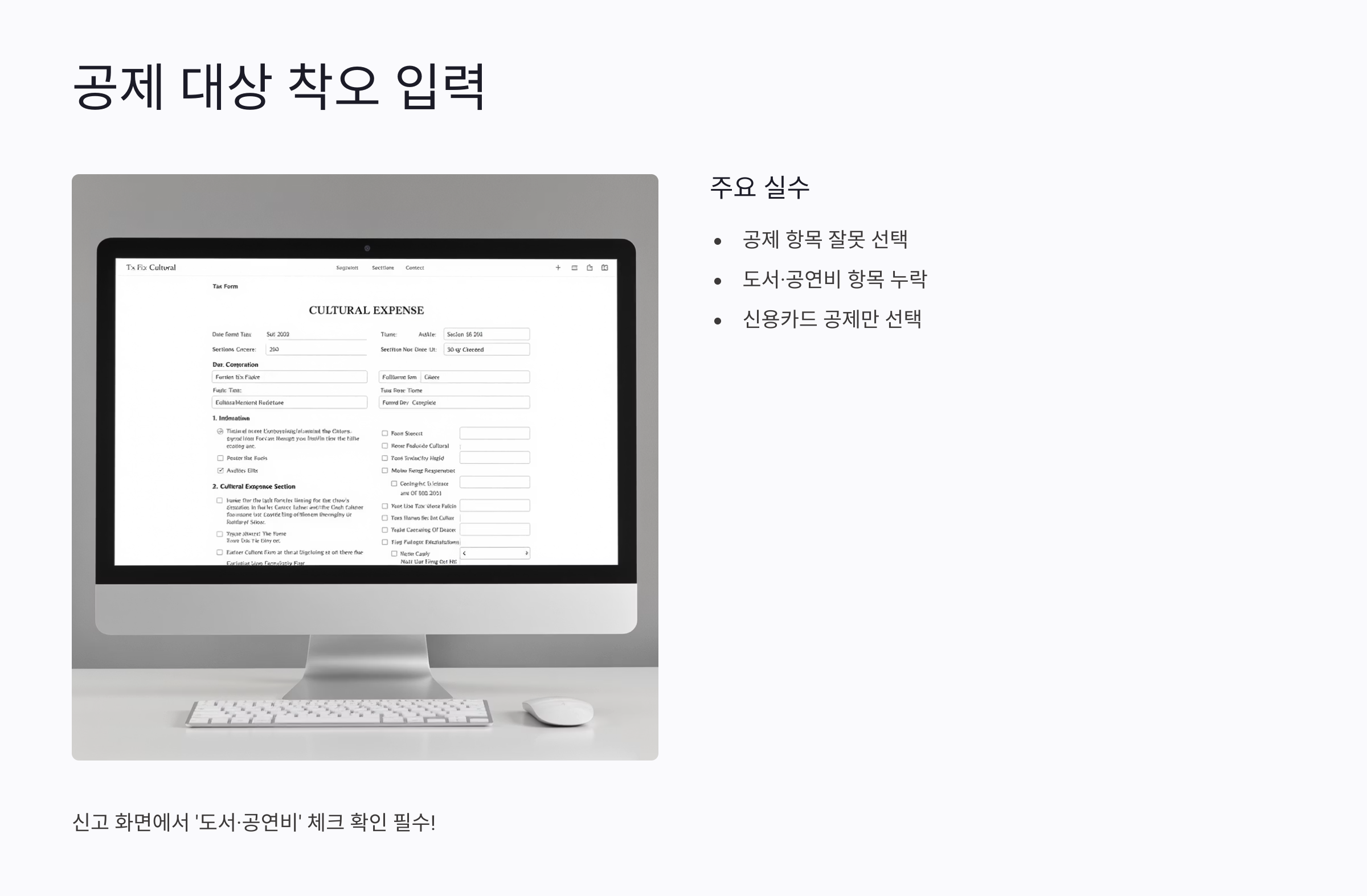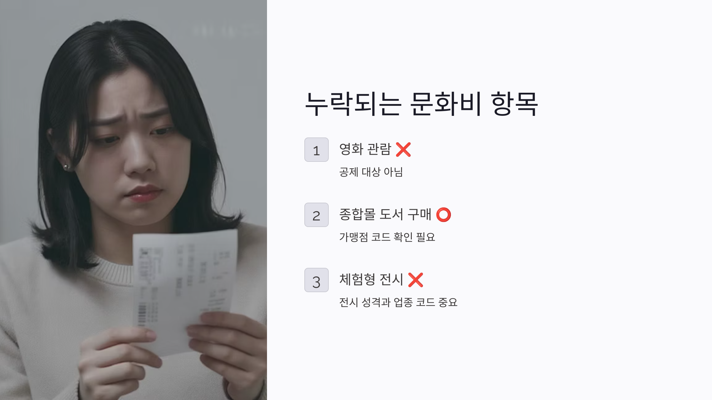 문화비 소득공제에서 가장 자주 발생하는 실수 중 하나는 ‘공제 대상이 아닌 항목’을 사용하고도 실적이 잡힐 거라고 착각하는 거예요.