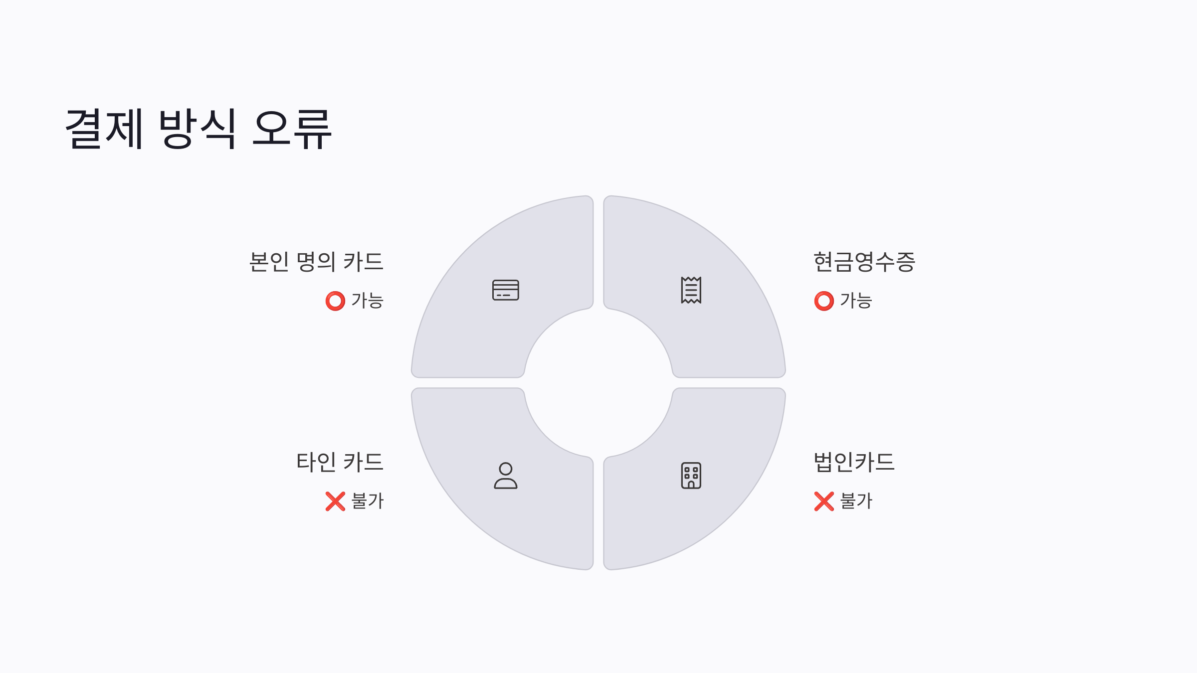 | 법인카드 / 타인 카드 | ❌ 불가 |