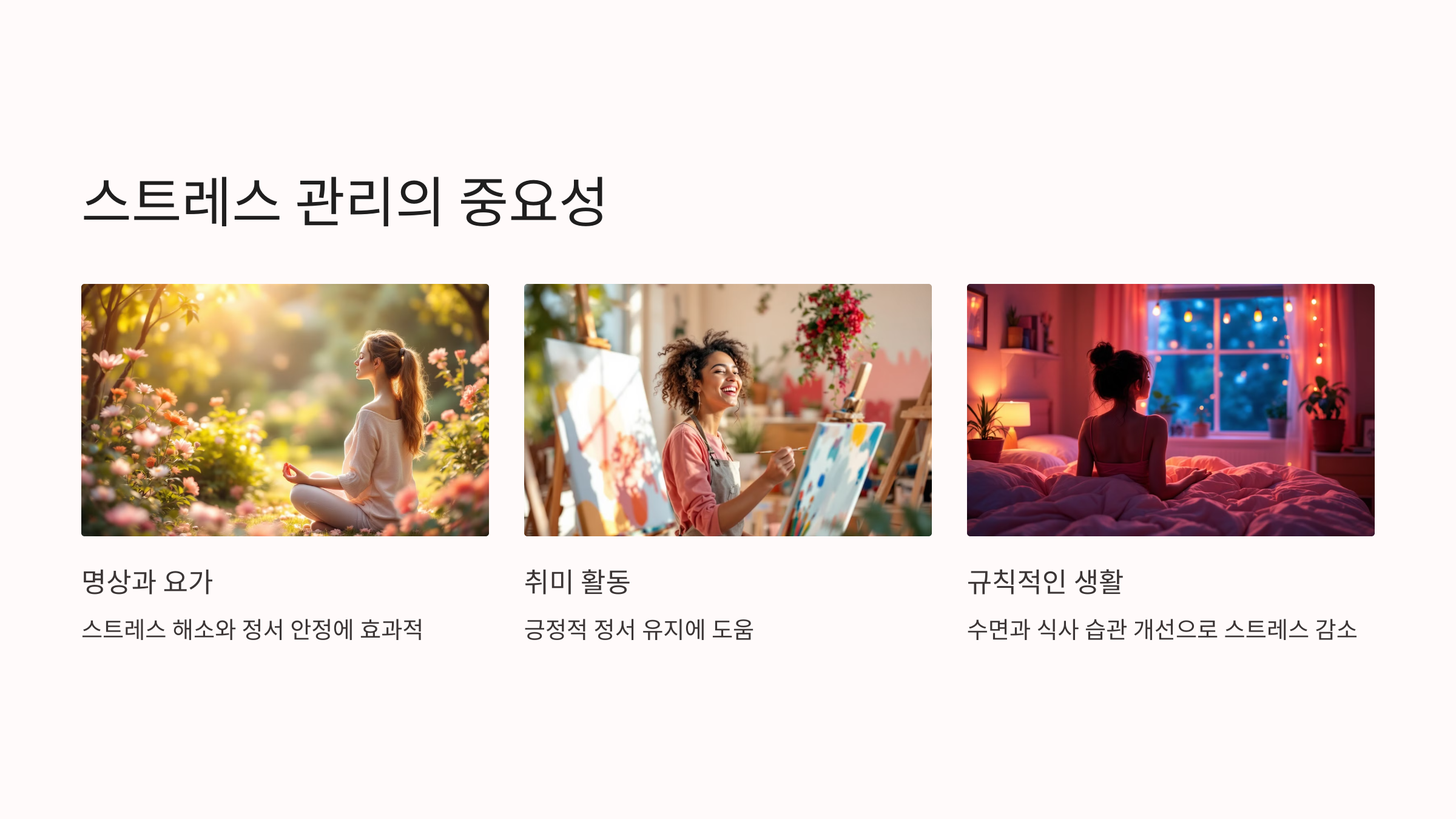 스트레스 관리 또한 장기적인 건강 관리 전략 중 하나입니다.