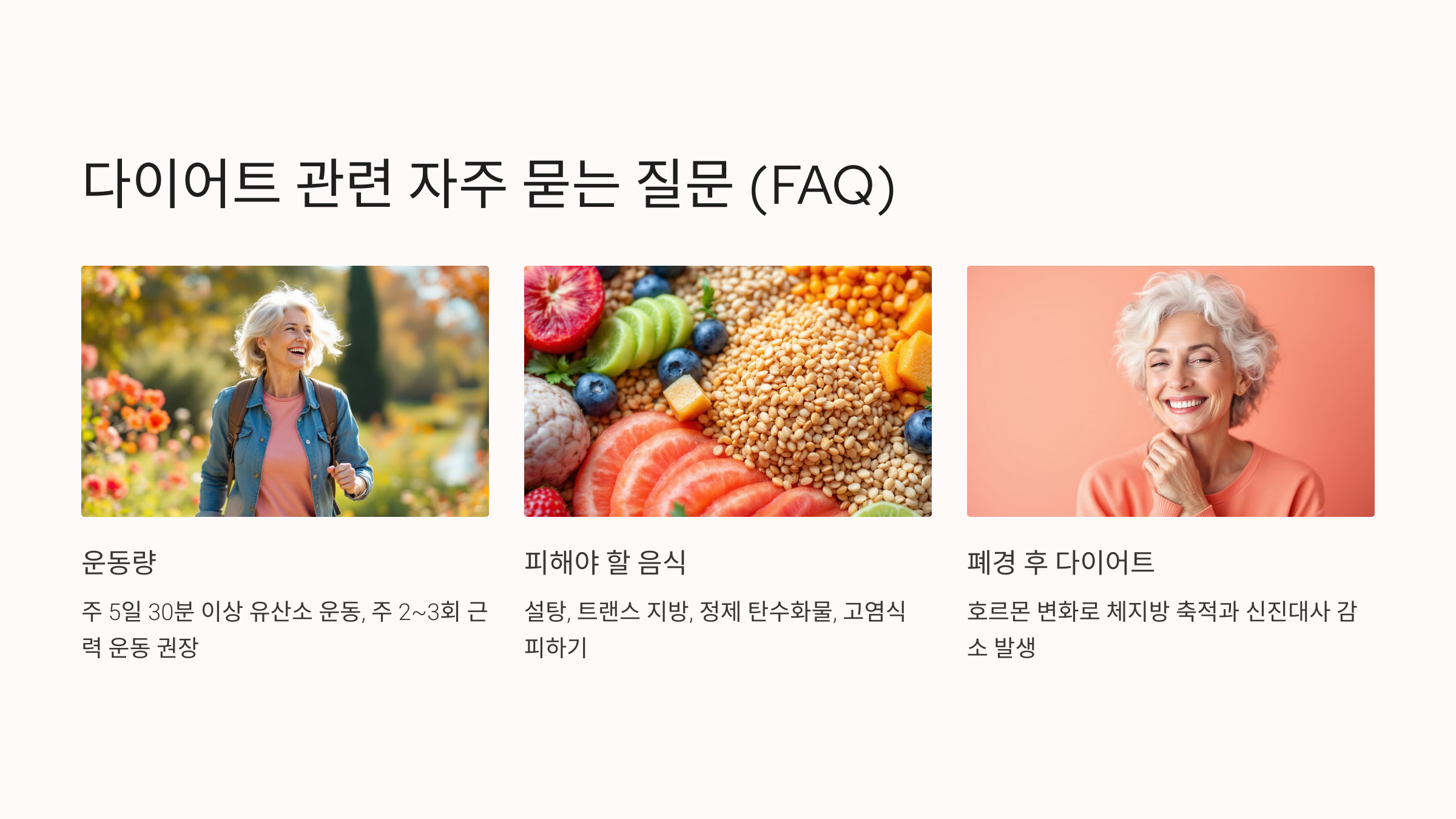 50대 여성의 다이어트는 단기적인 목표보다는 지속 가능성을 중요시해야 합니다.