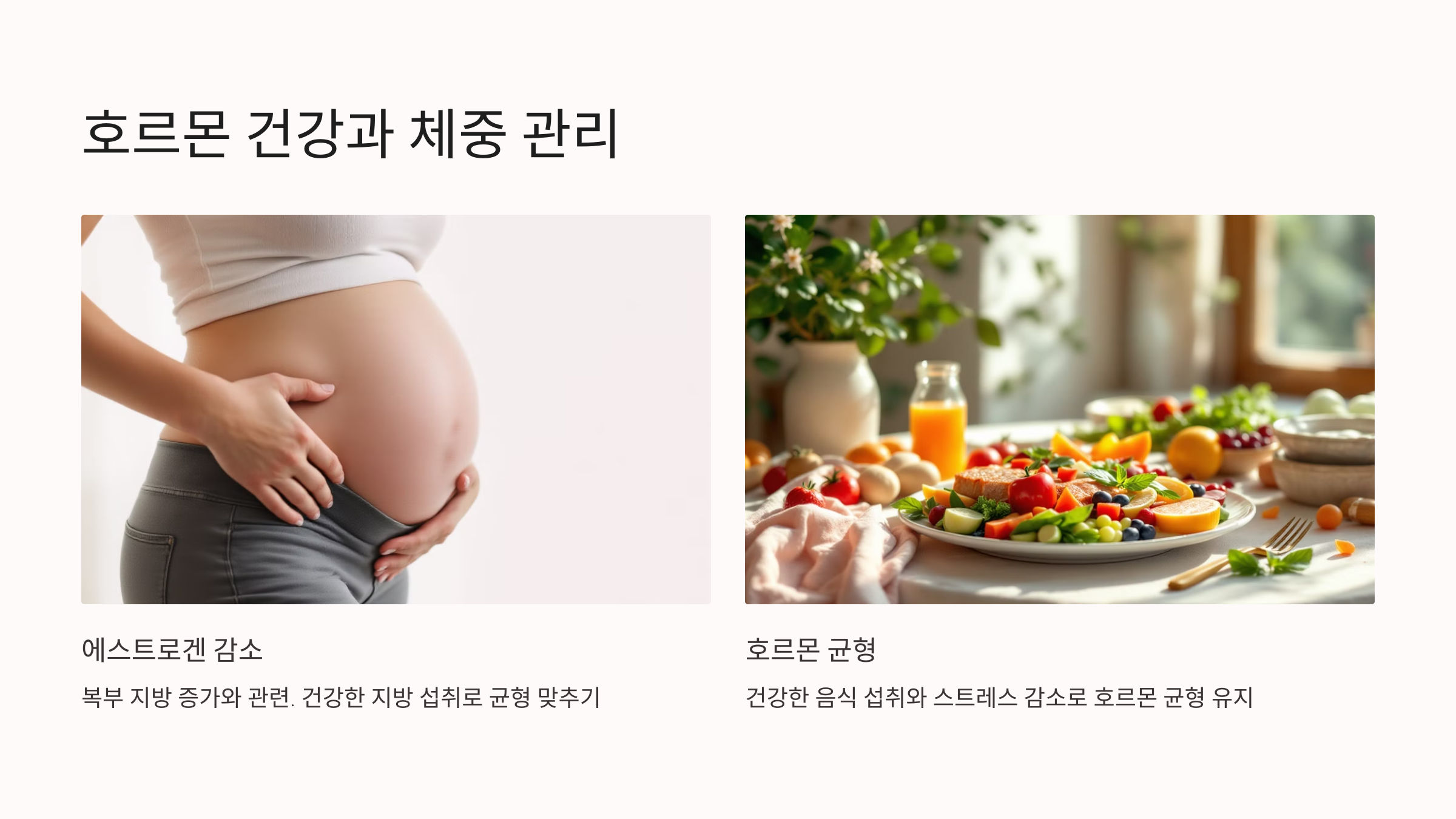 폐경 이후 호르몬 변화로 인해 체지방이 복부에 축적되는 경향이 나타납니다.