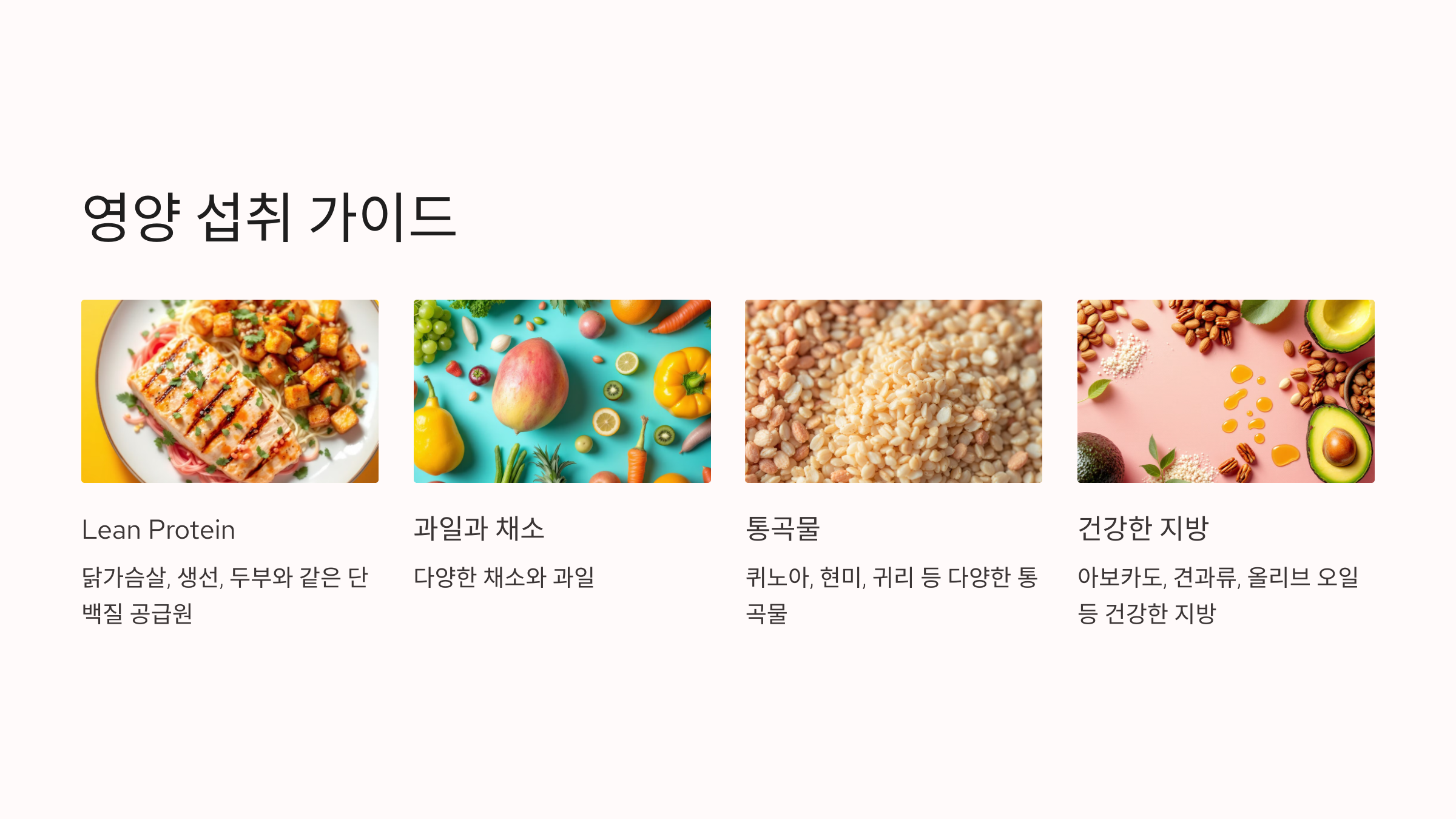 식단은 개인의 기호와 건강 상태에 맞춰 설계해야 하며, 전문 영양사의 조언을 받을 수 있습니다.