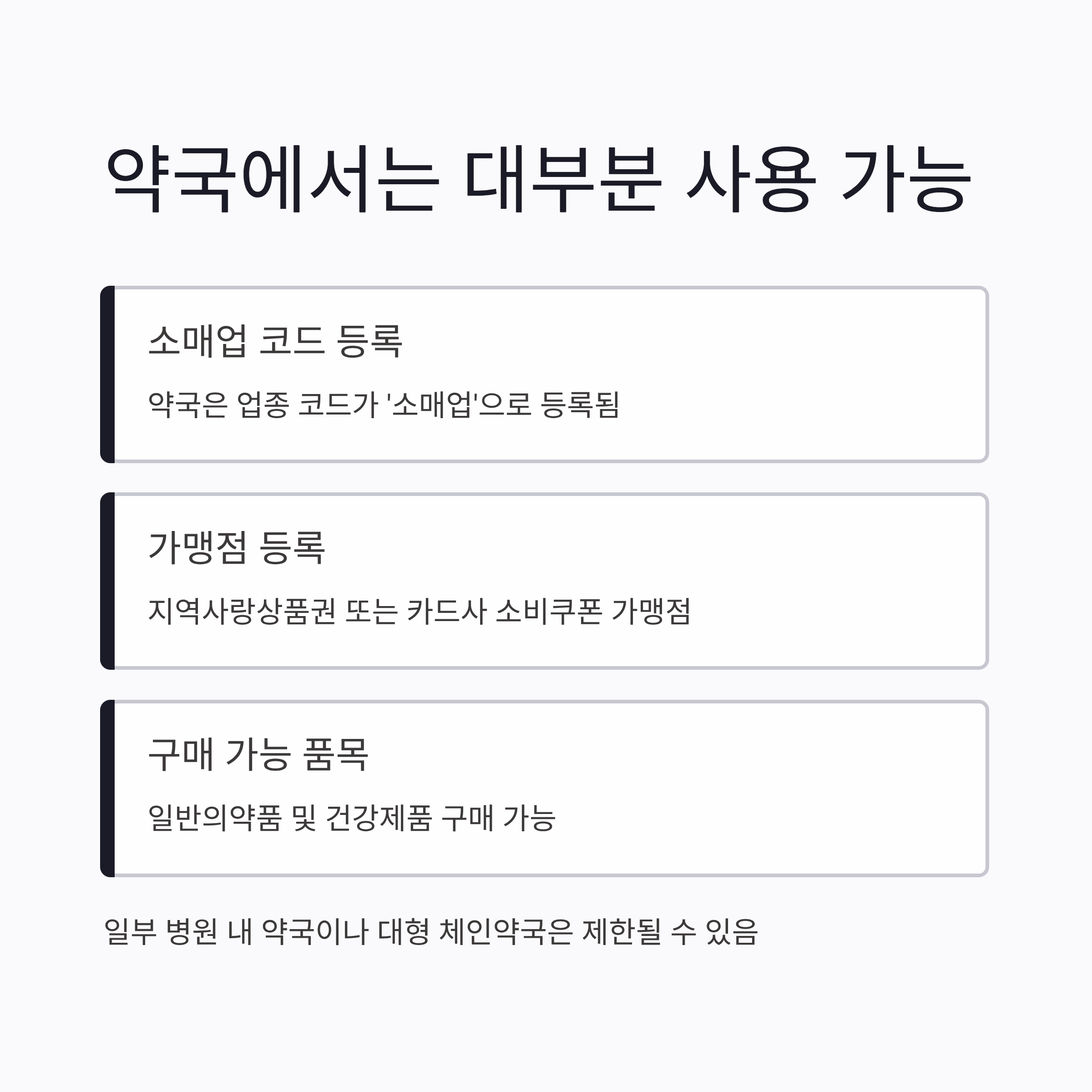 약국은 대부분 소비쿠폰 사용이 가능해요. 이유는 다음과 같아요: