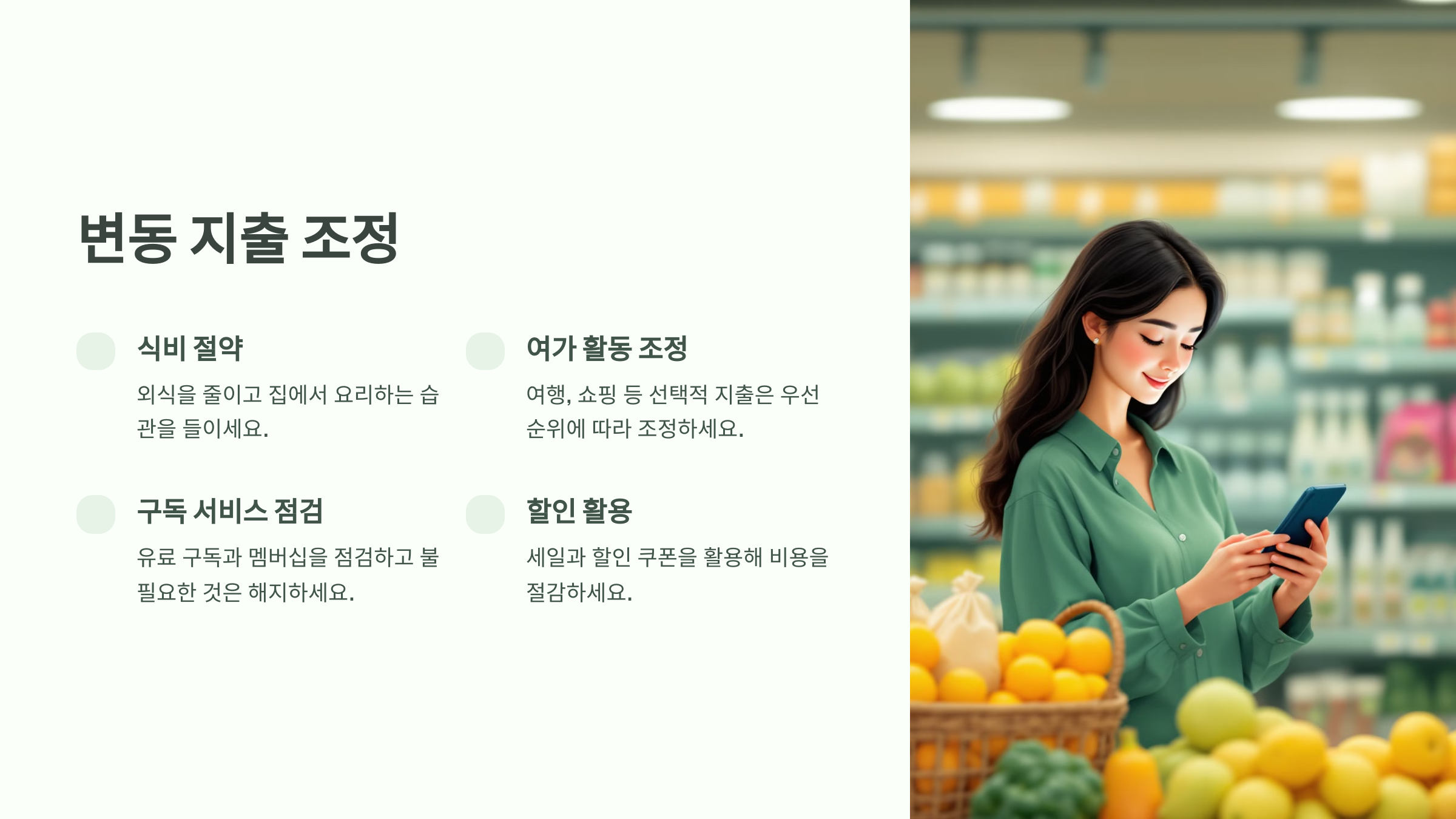 변동 지출을 체계적으로 관리하면 재정 압박을 줄일 수 있습니다.