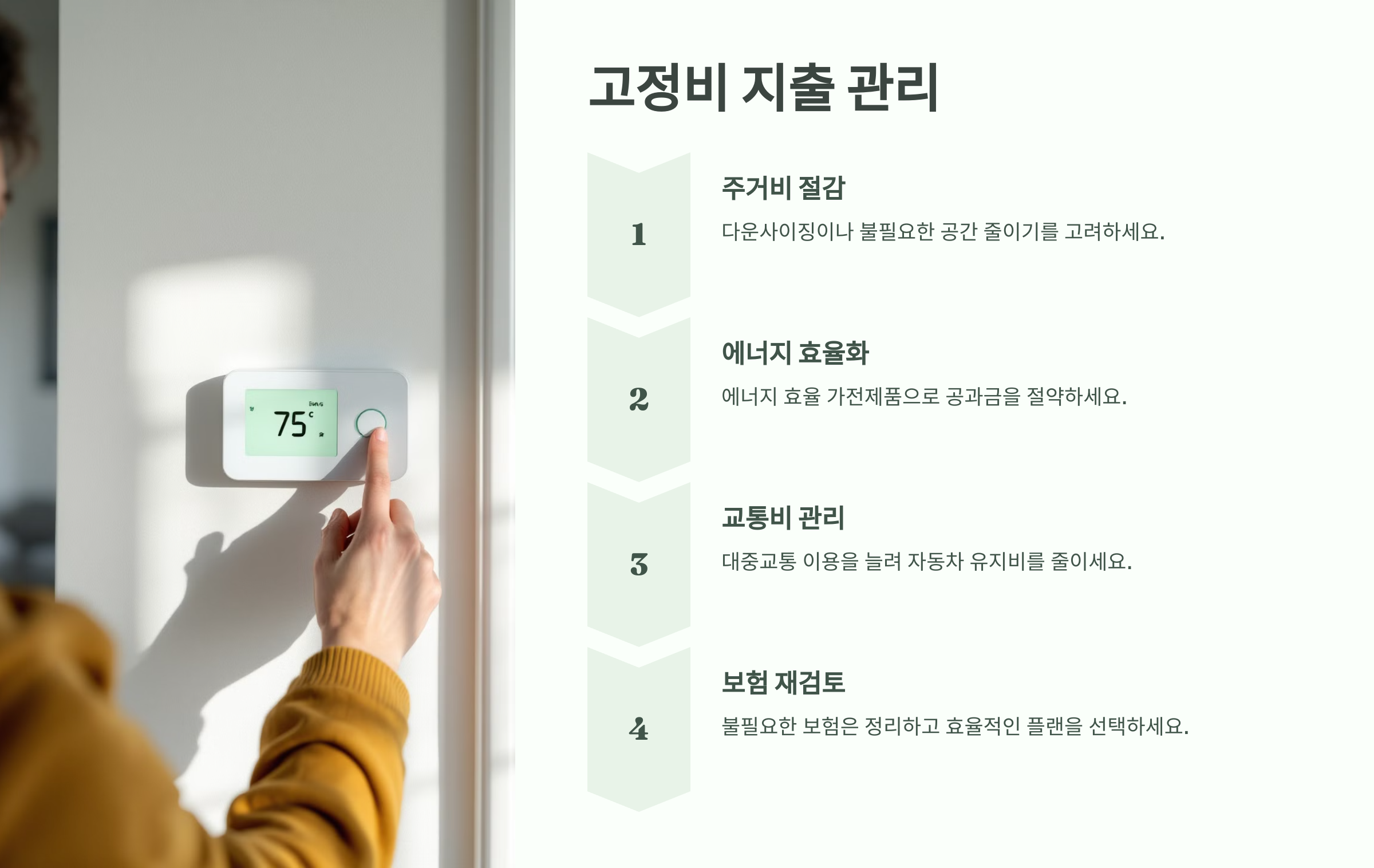 다운사이징, 공과금 절약, 보험료 재검토 등을 통해 고정비를 절감할 수 있습니다.