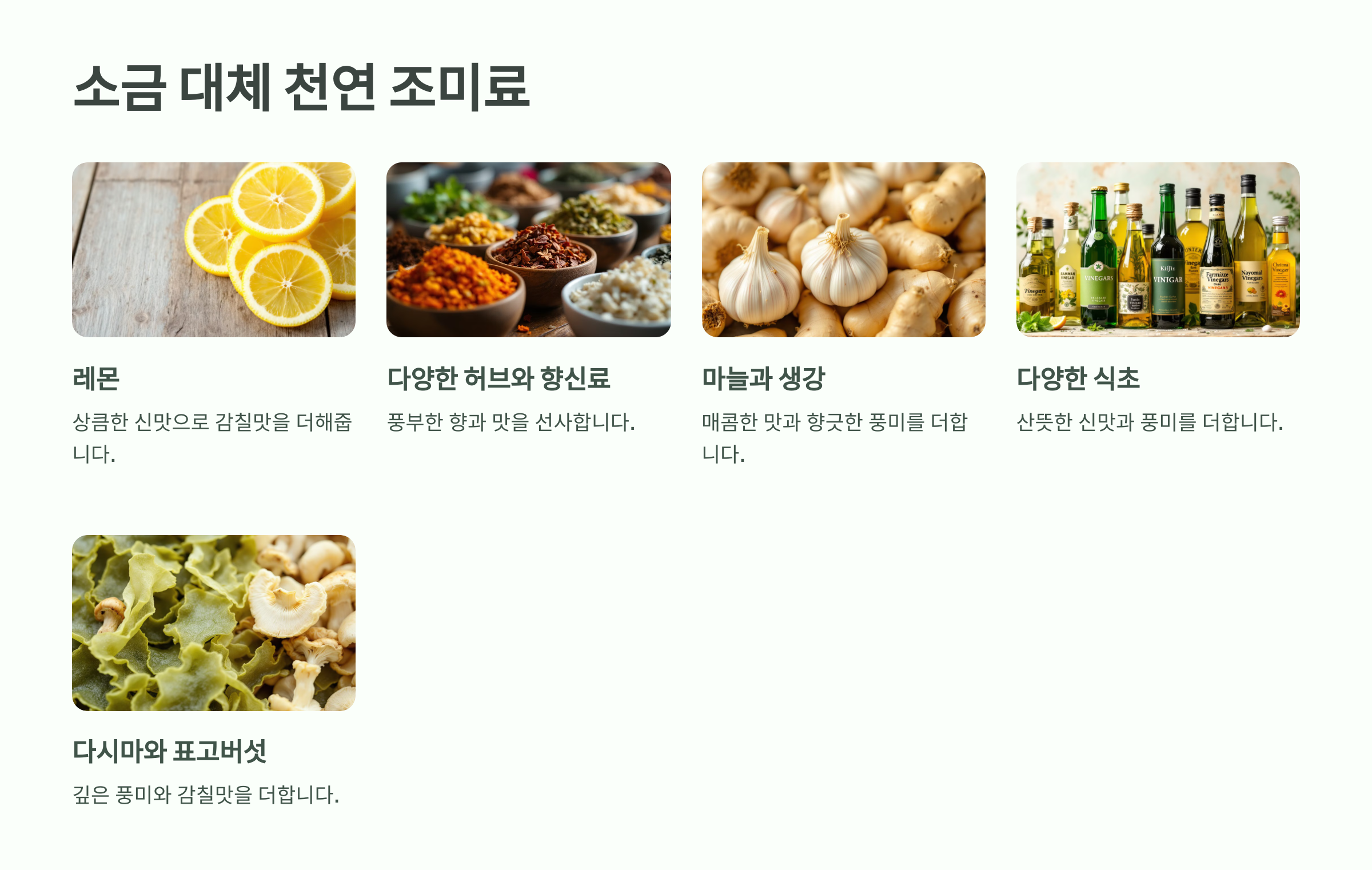 소금을 대체할 천연 조미료를 활용하면 나트륨 섭취를 줄이면서도 맛을 풍부하게 만들 수 있습니다.