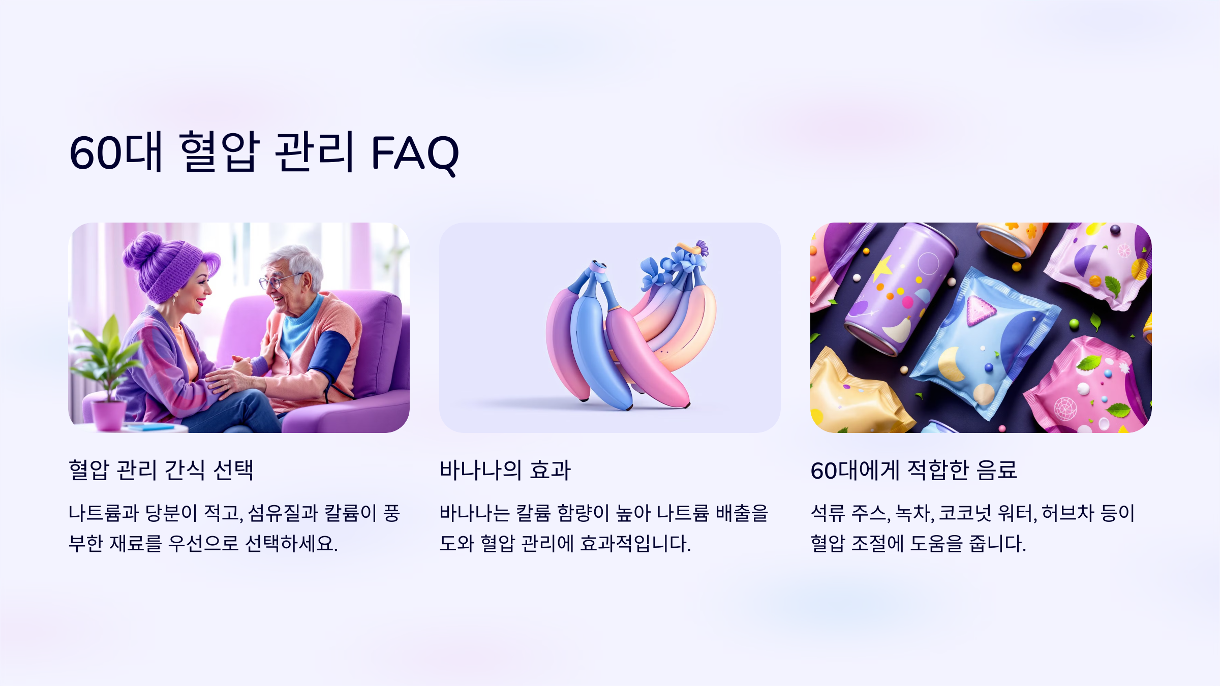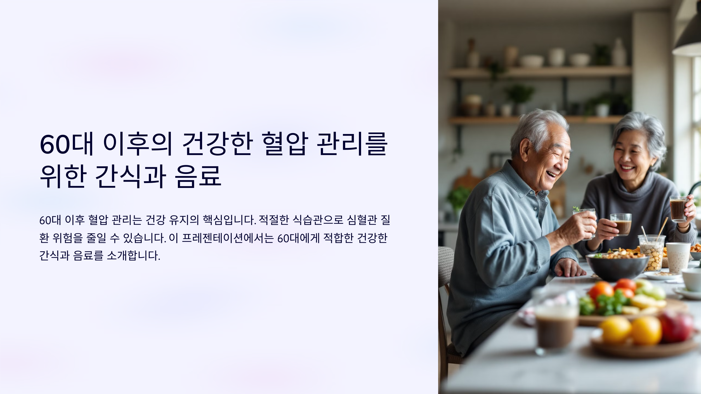 60대 이후 혈압 관리는 건강을 유지하는 데 있어 가장 중요한 부분 중 하나입니다. 적절한 식습관은 혈압을 조절하고 심혈관 질환의 위험을 줄이는 데 도움을 줍니다. 이 글에서는 60대에게 적합한 건강한 간식과 음료를 추천해 드리며, 맛과 영양을 모두 충족시키는 선택지를 제안합니다.