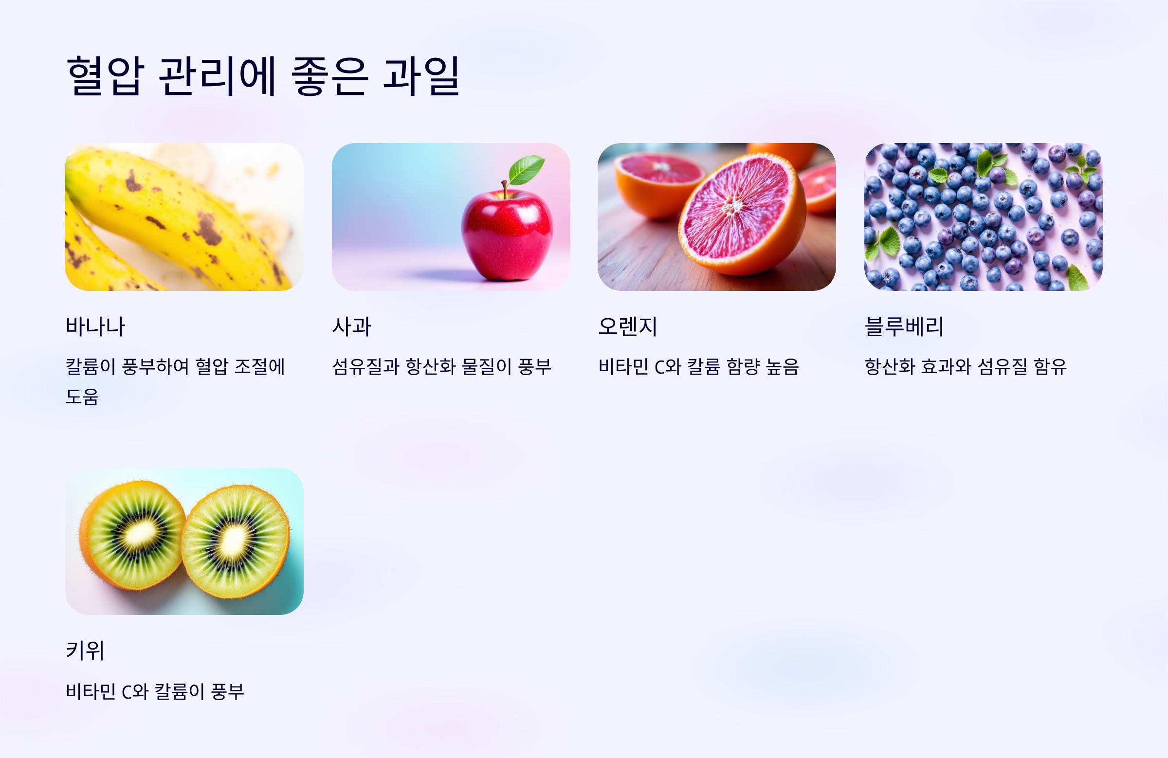 바나나, 사과, 오렌지, 블루베리와 같은 과일이 혈압 관리에 유익합니다.