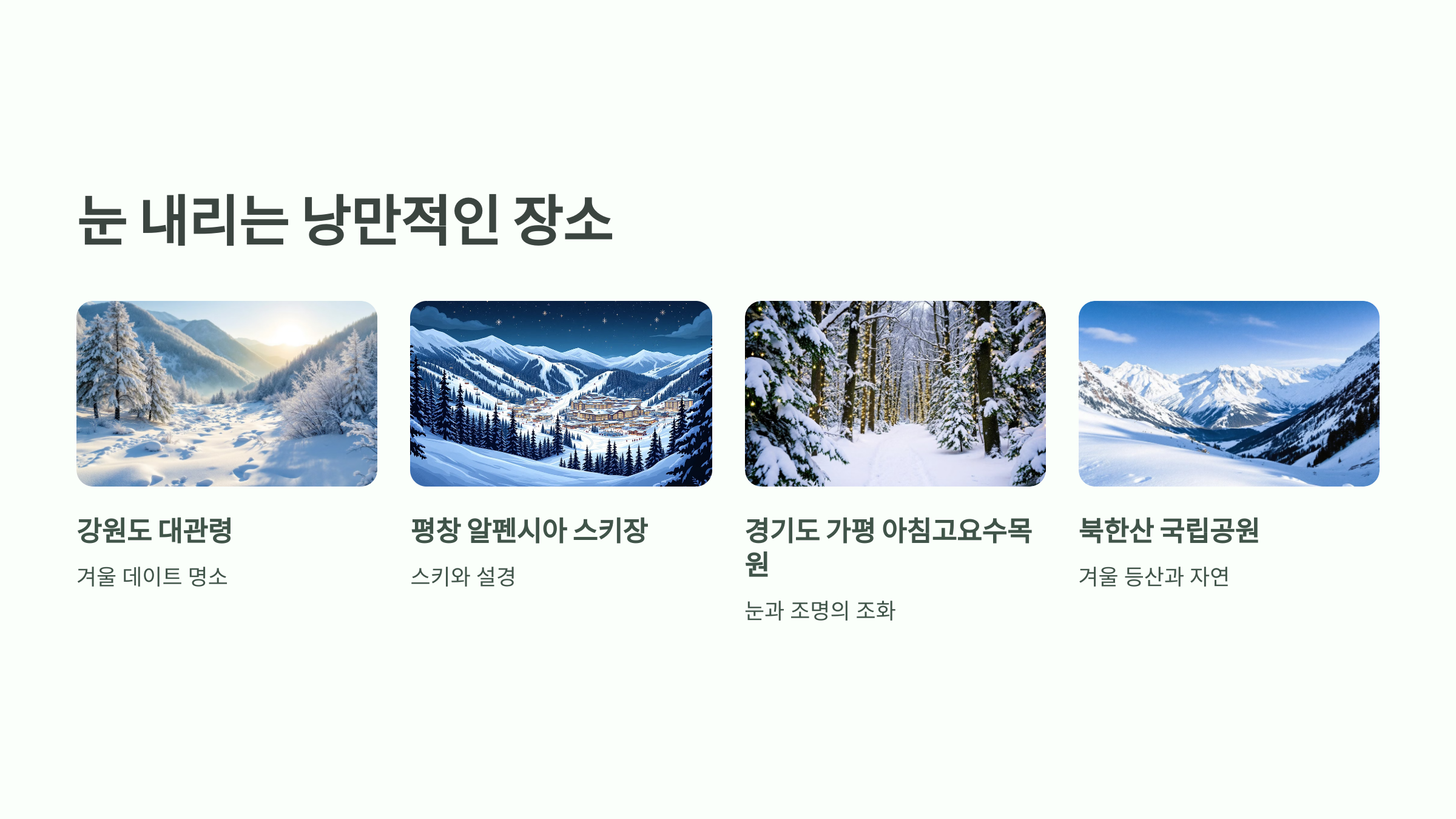 강원도 대관령은 겨울철 가장 인기 있는 눈 내리는 데이트 코스로 손꼽힙니다.