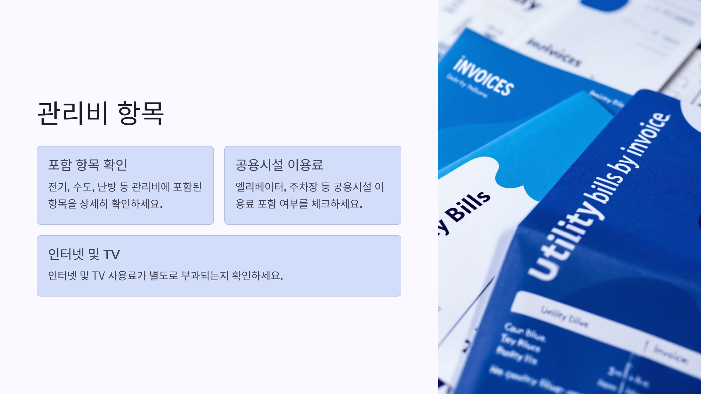 첫째, 전기, 수도, 가스 요금이 별도로 청구되는지 확인하세요.