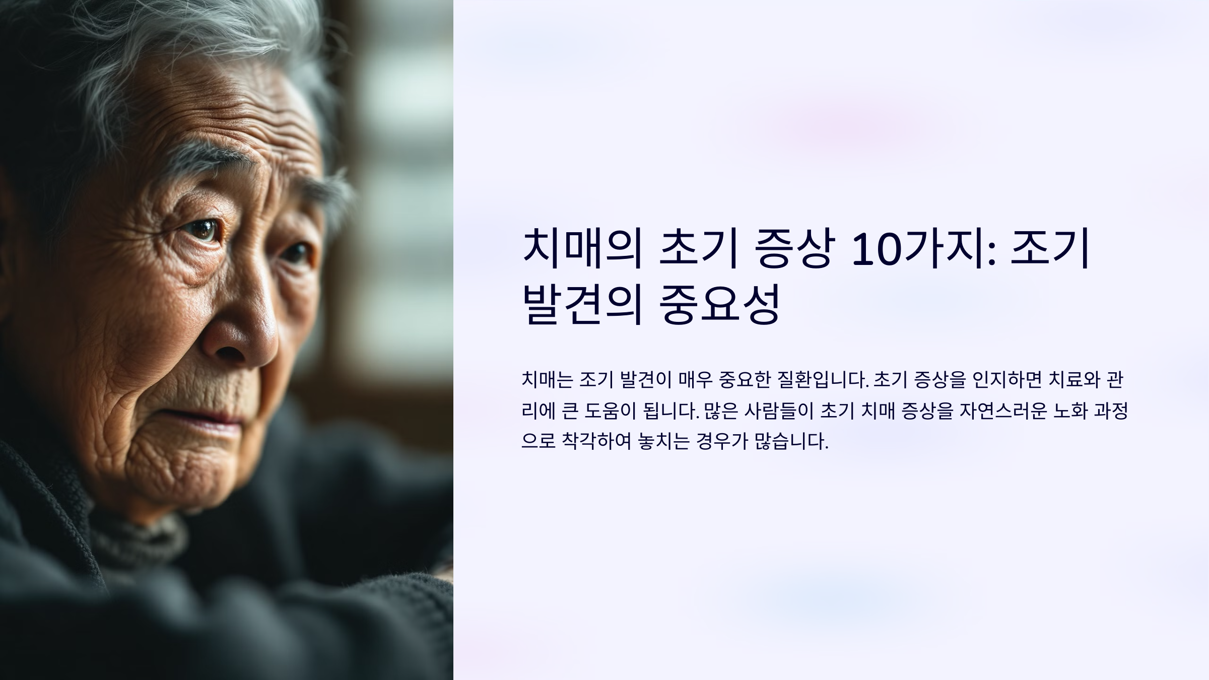 치매는 조기 발견이 매우 중요한 질환으로, 초기 증상을 인지하면 치료와 관리에 있어 큰 도움이 될 수 있습니다. 하지만 많은 사람들이 초기 치매 증상을 자연스러운 노화 과정으로 착각하여 놓치는 경우가 많습니다. 이번 글에서는 절대 놓치지 말아야 할 초기 치매 증상 10가지에 대해 살펴보겠습니다.