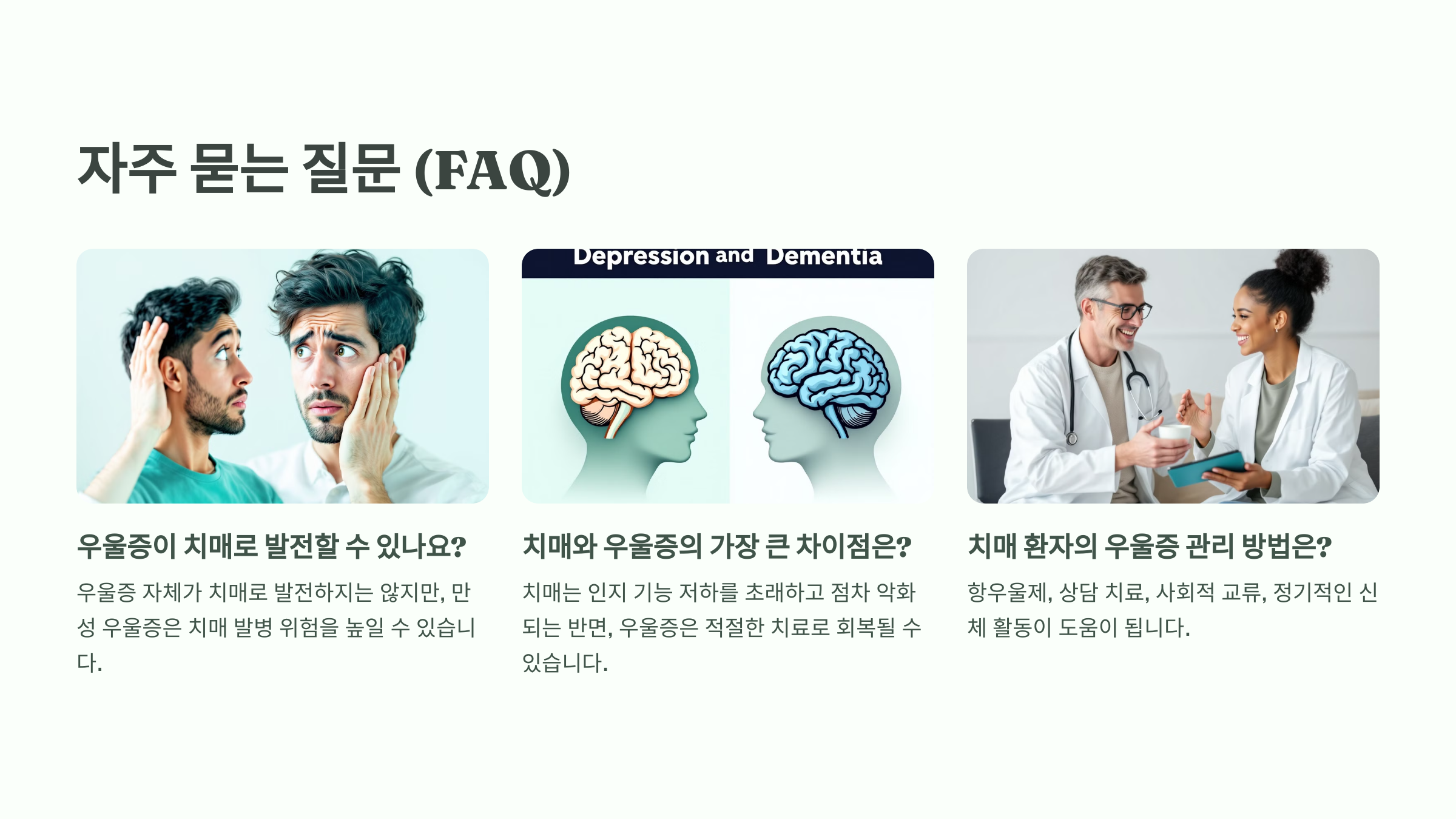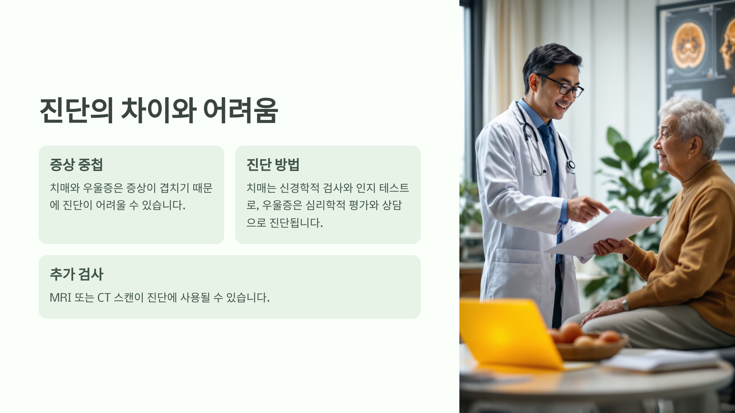 치매와 우울증이 동시에 존재할 경우, 우울증이 치매 증상을 더 악화시킬 수 있습니다.