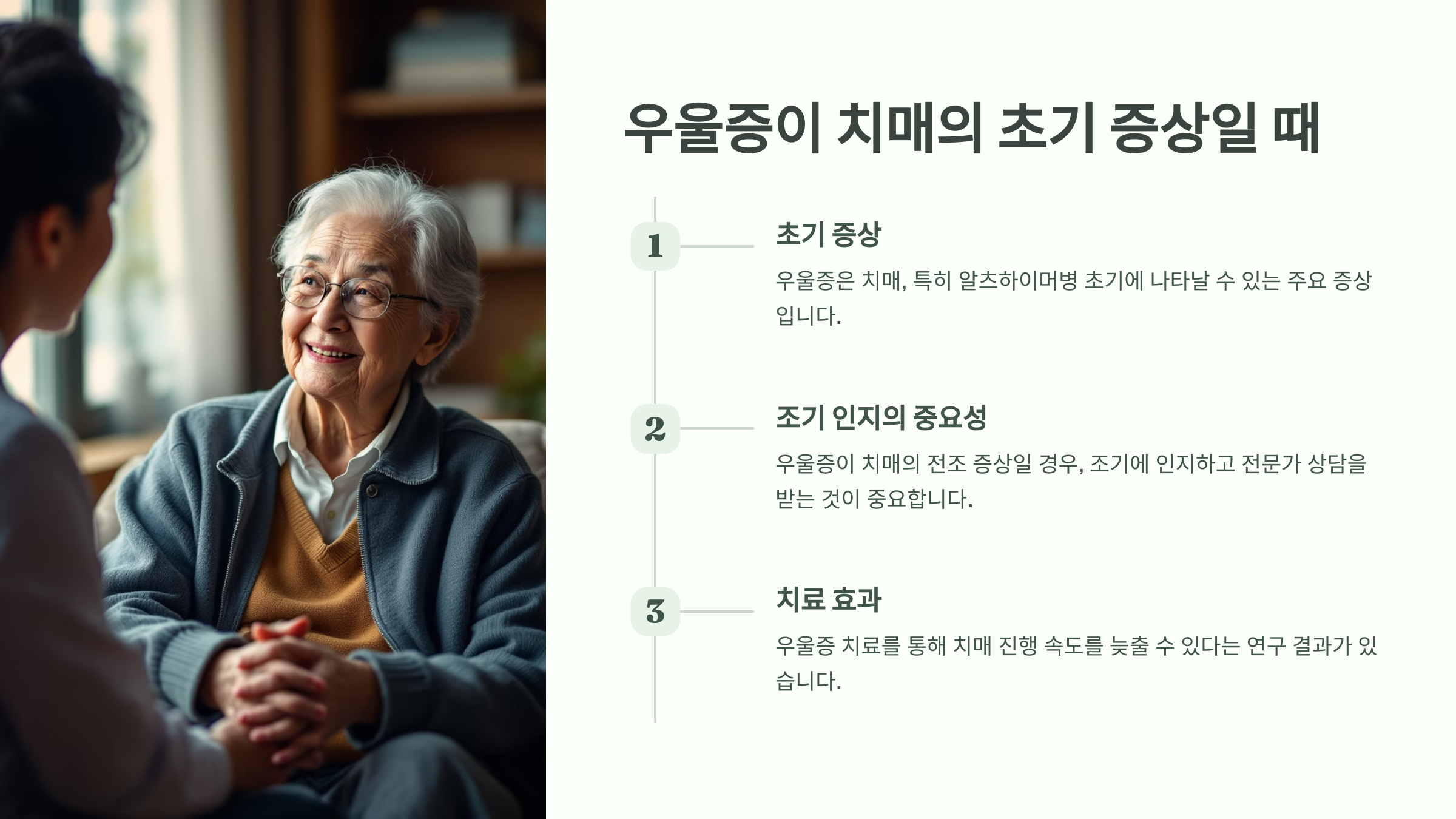 우울증이 치매의 전조 증상으로 나타날 경우, 이를 조기에 인지하는 것이 중요합니다.