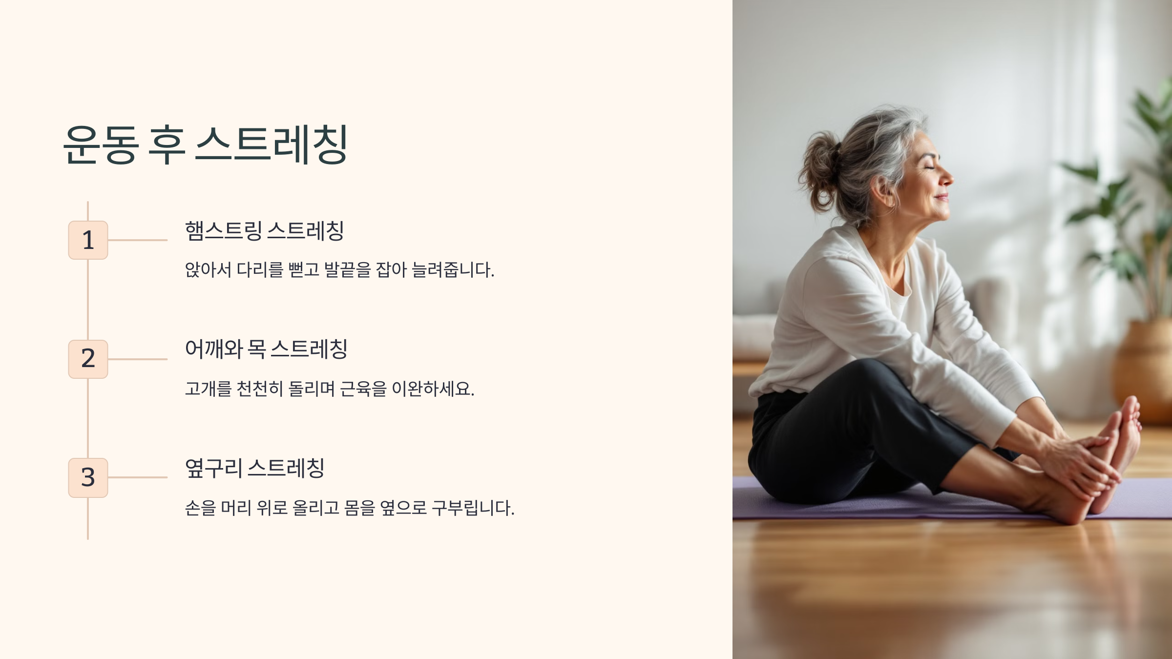 운동 후에는 반드시 스트레칭으로 마무리하세요.