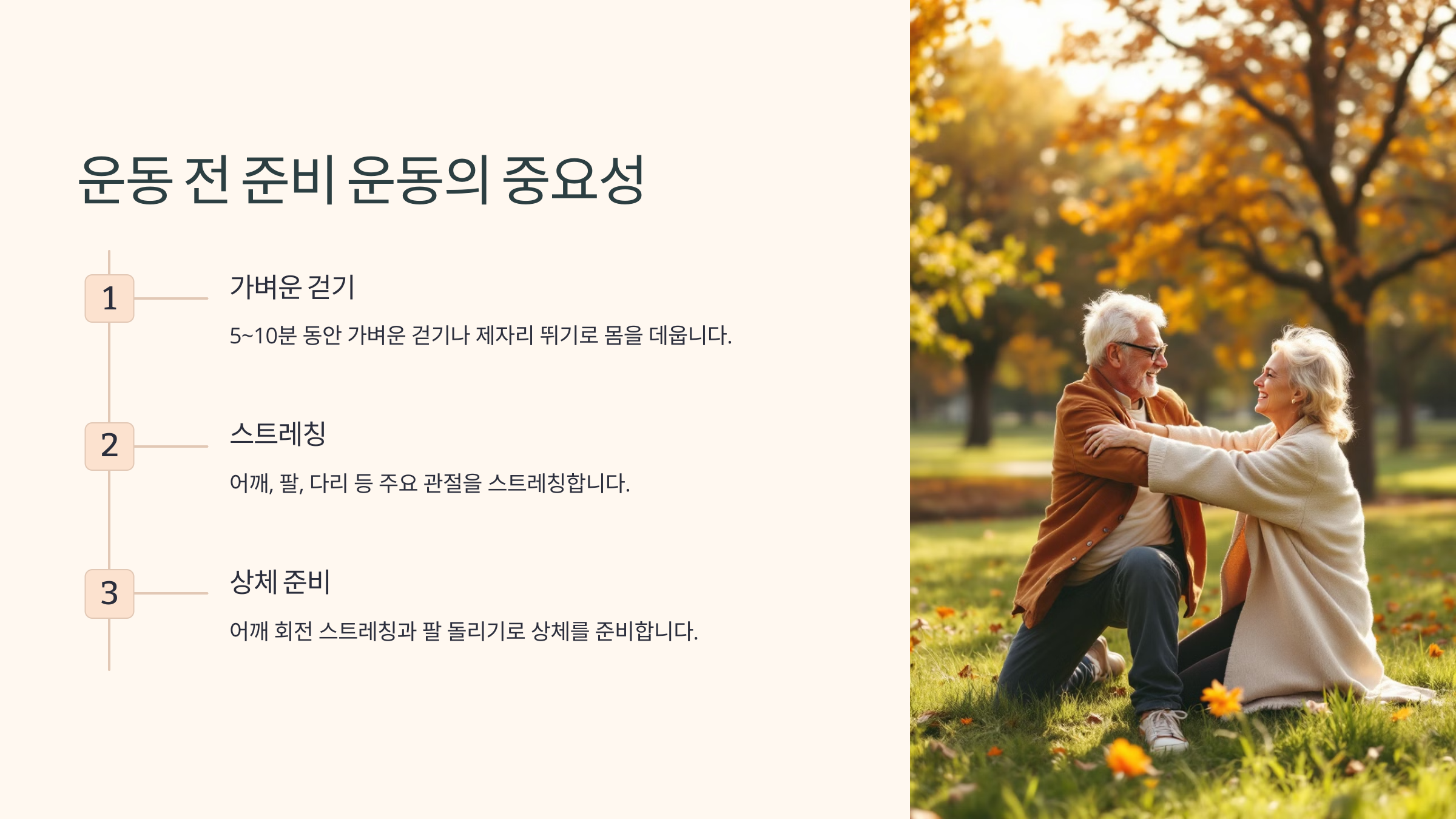 적절한 준비 운동은 운동 효과를 극대화하고 안전하게 운동할 수 있게 해줍니다.