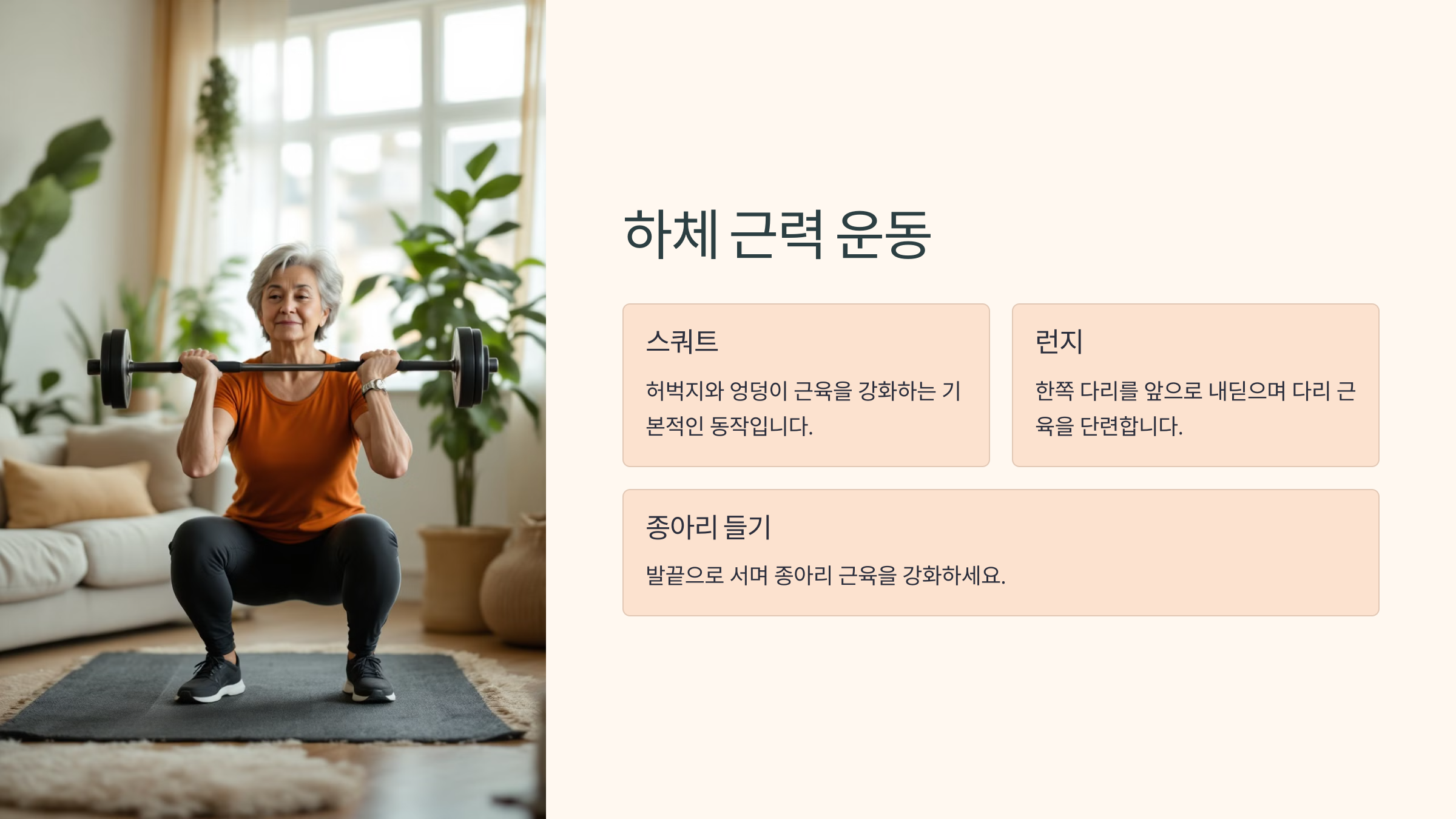 하체 근력 운동은 관절 안정성과 균형감을 향상시킵니다.