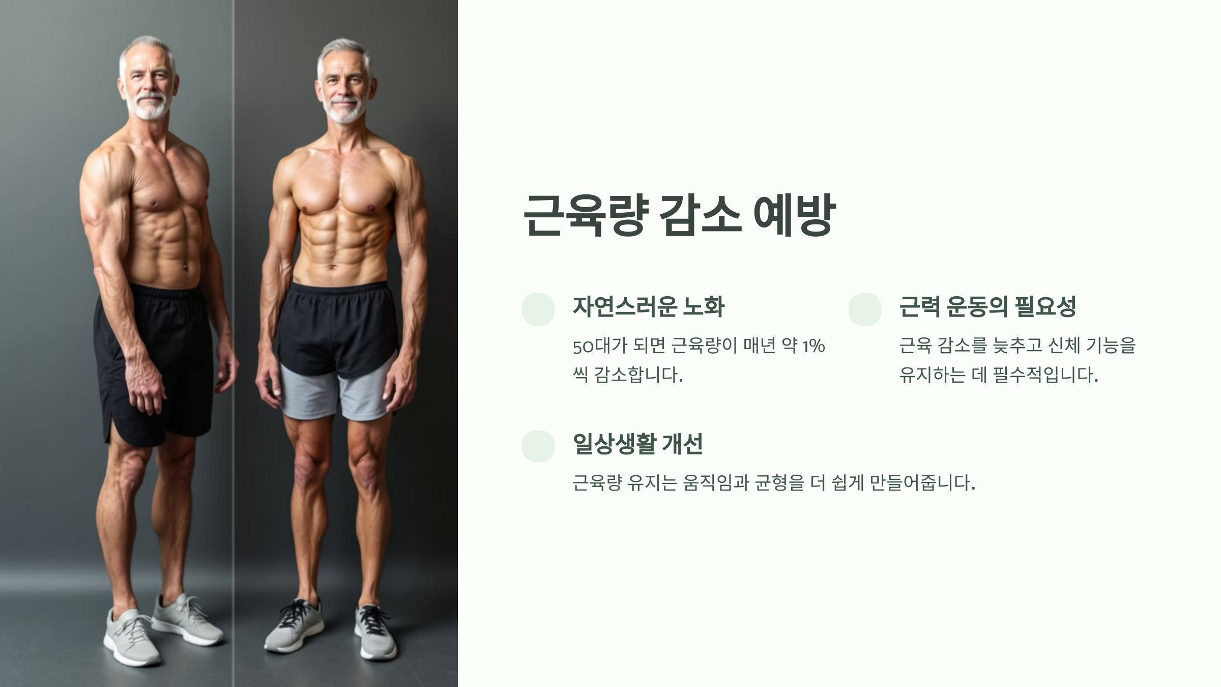 근력 운동은 근육 감소를 늦추고 신체 기능을 유지하는 데 필수적입니다.