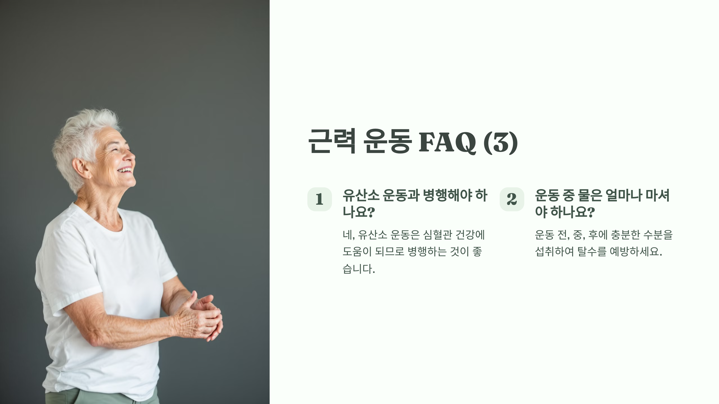 매주 2~3회 근력 운동을 통해 노화로 인한 근육 손실을 방지할 수 있습니다.