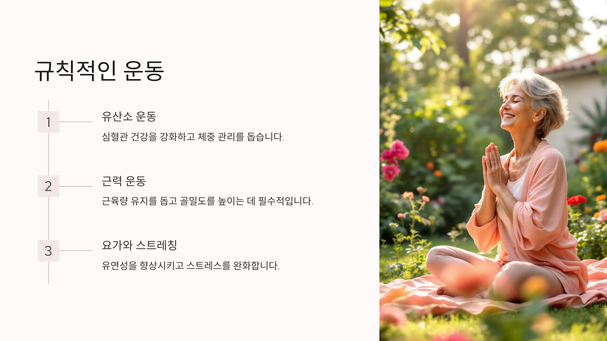 갱년기 동안 운동은 건강한 생활을 유지하는 핵심 요소입니다.
