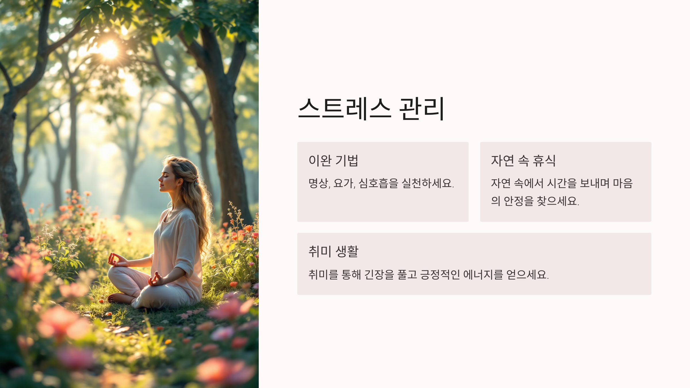 명상, 요가, 심호흡과 같은 이완 기법을 실천하세요.