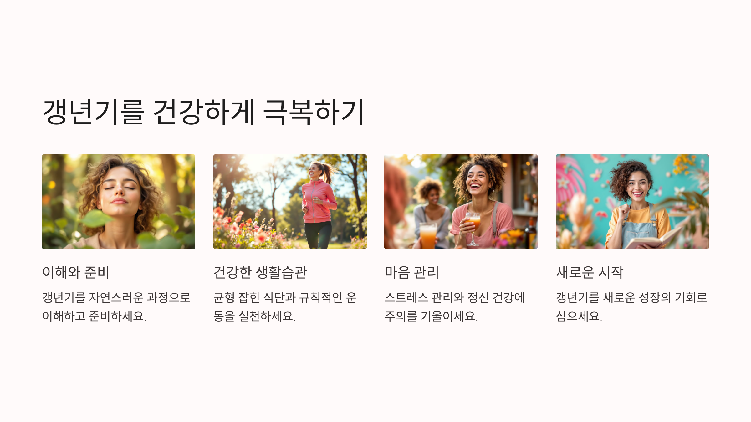 갱년기는 단순히 변화의 시기가 아니라 새로운 시작점이 될 수 있습니다.