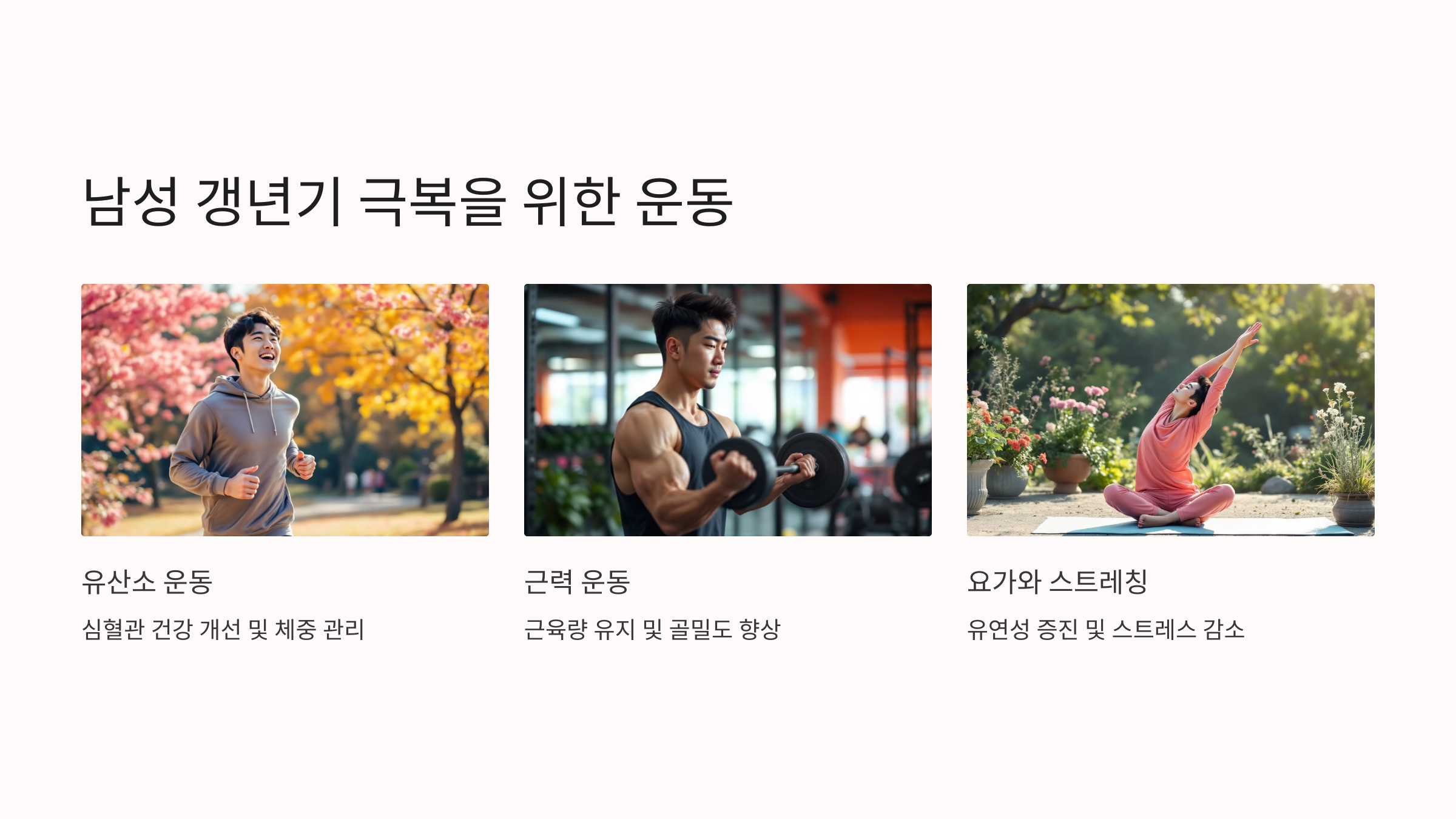 라이프스타일 변화는 남성 갱년기를 극복하는 데 큰 도움이 됩니다.