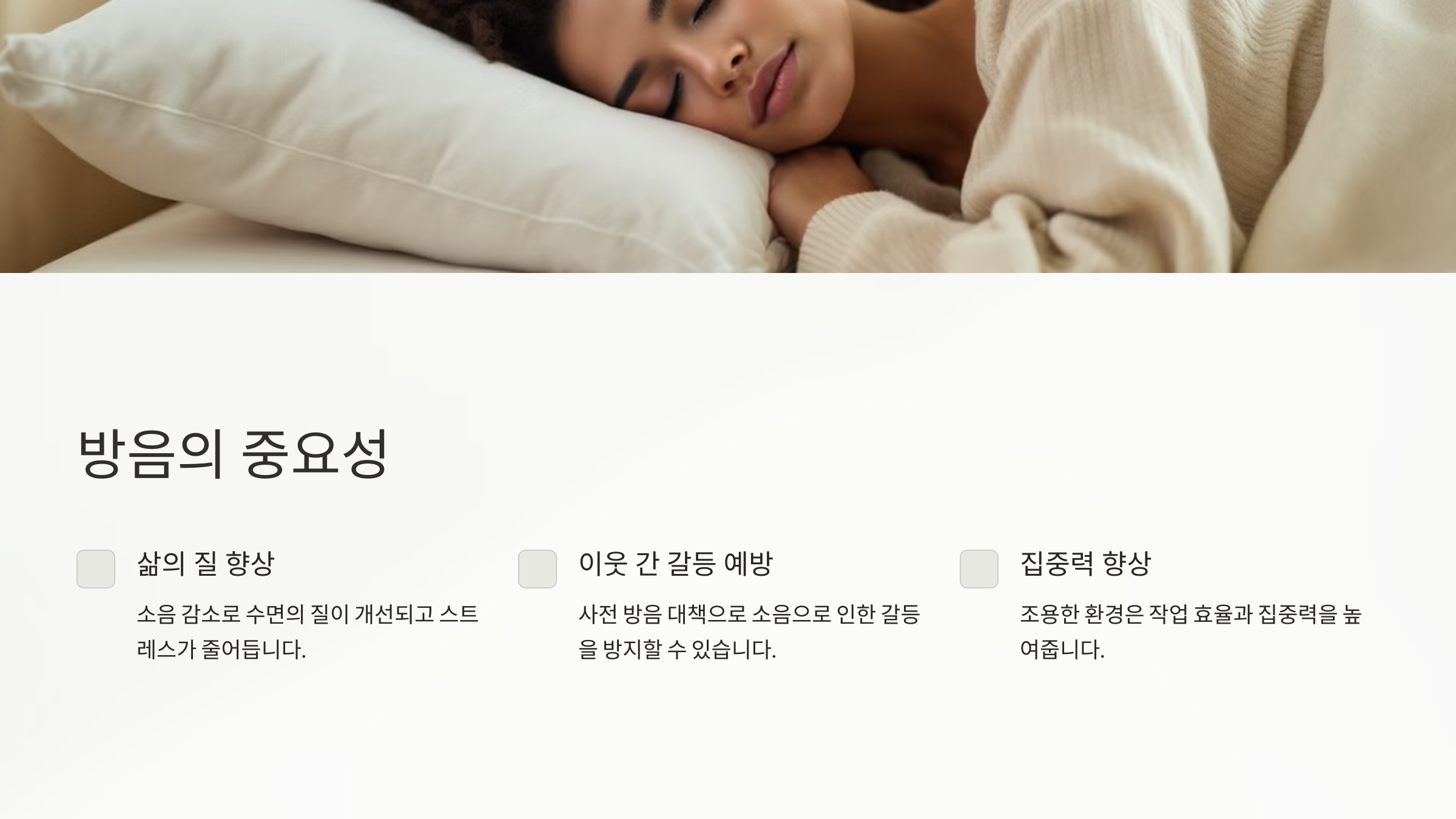 간단한 방음 조치를 통해 생활의 질을 높이는 데 집중하세요.