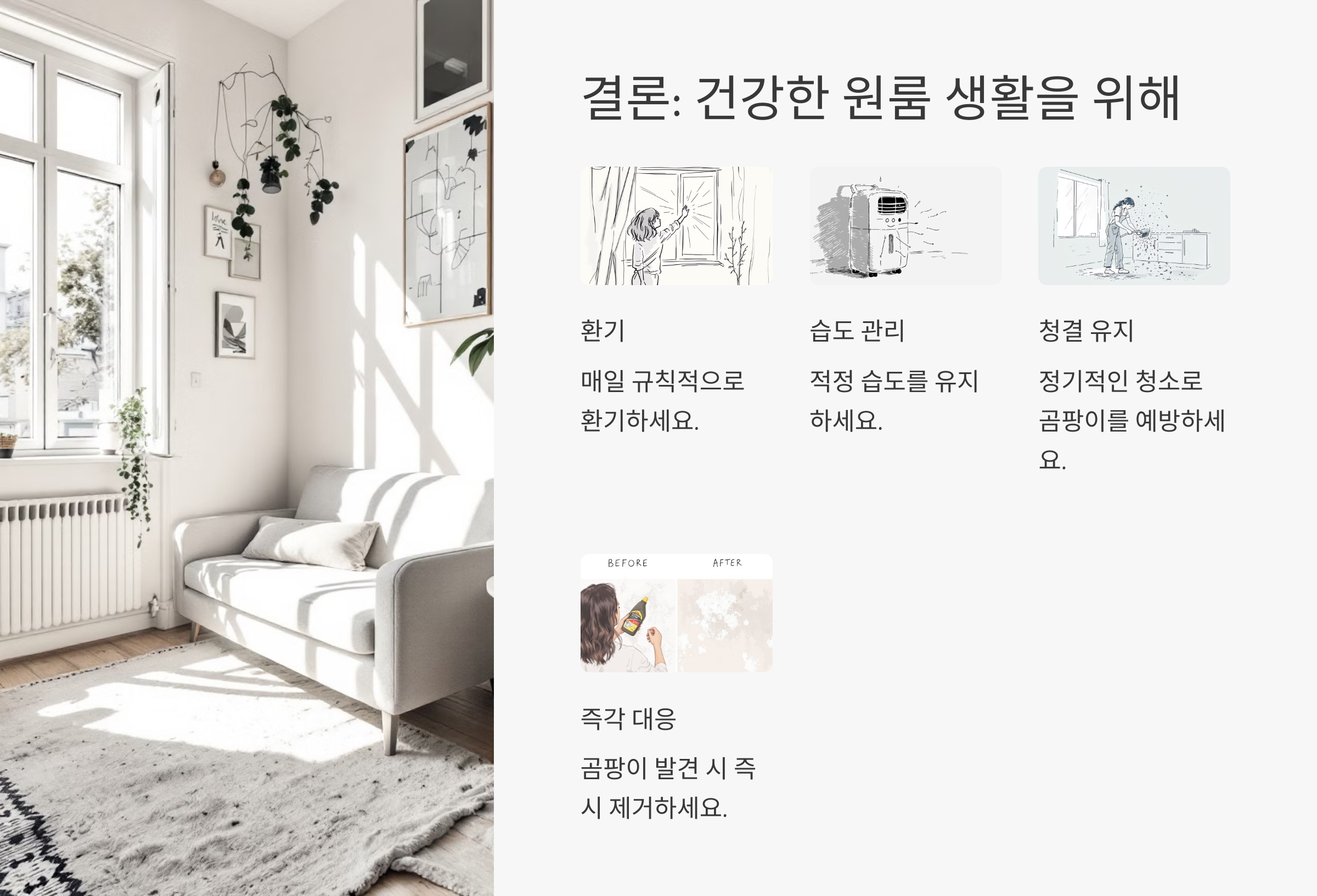 생활 공간을 청결히 유지하면 곰팡이 예방 뿐만 아니라 건강도 지킬 수 있습니다.