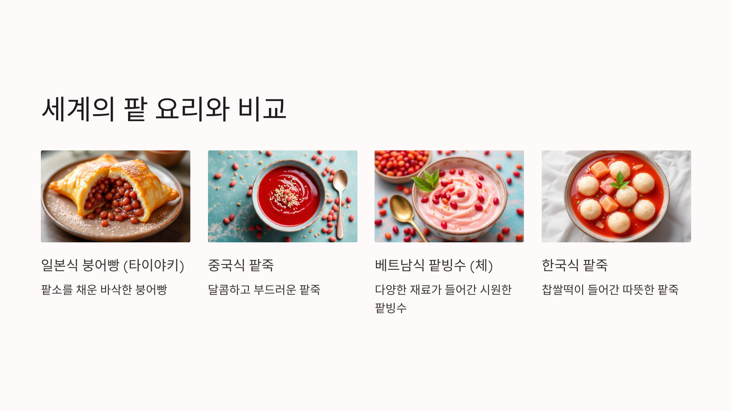 이처럼 팥은 다양한 문화권에서 독특한 방식으로 조리됩니다.