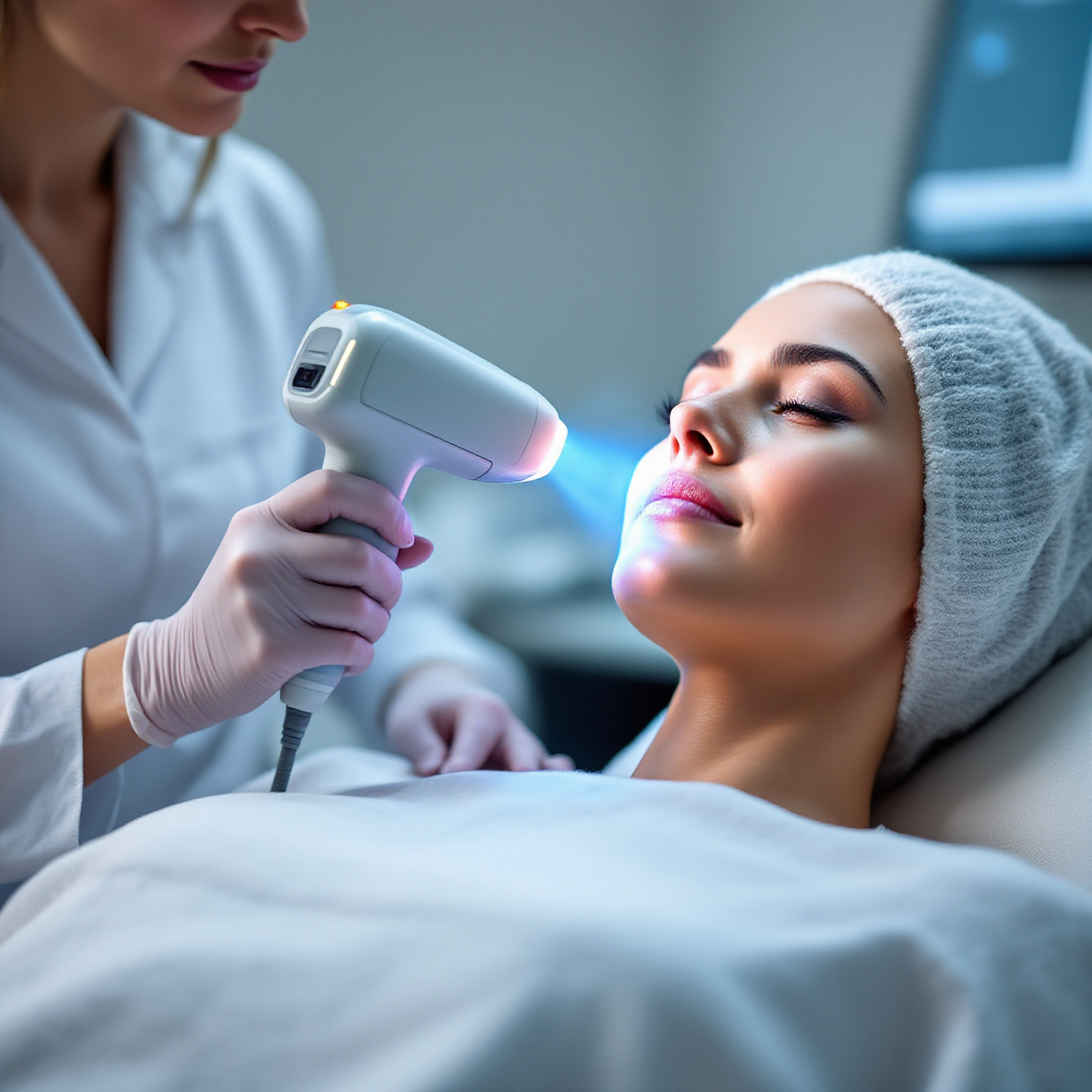 IPL 치료는 다양한 파장의 빛을 사용해 피부 표면의 색소침착을 완화하는 방법입니다.
