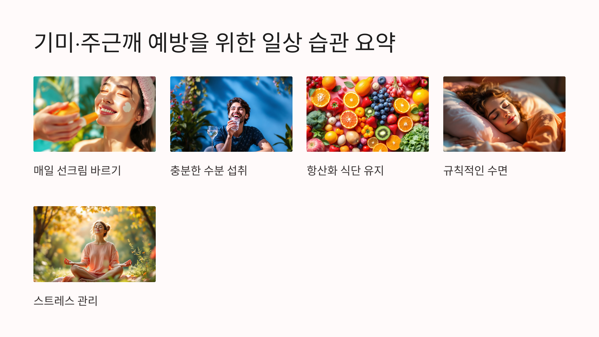 기미와 주근깨는 피부의 색소침착으로 인해 발생하며, 이를 예방하기 위해서는 생활습관을 꾸준히 관리하는 것이 중요합니다. 아래에 소개된 일상 속 작은 습관을 통해 피부 톤을 한층 더 맑고 건강하게 유지하세요!