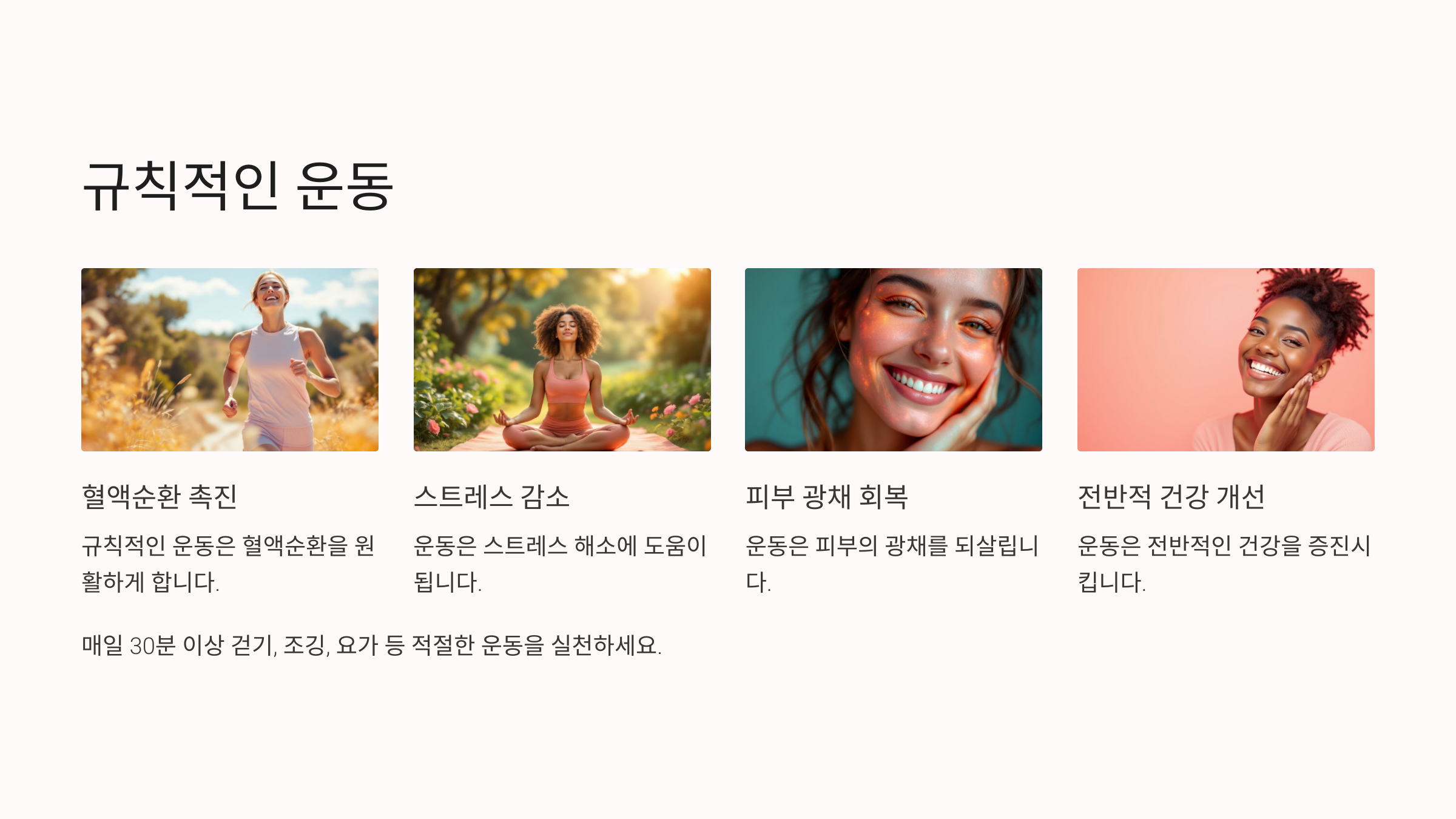 규칙적인 운동은 피부를 맑고 건강하게 유지하는 습관입니다.
