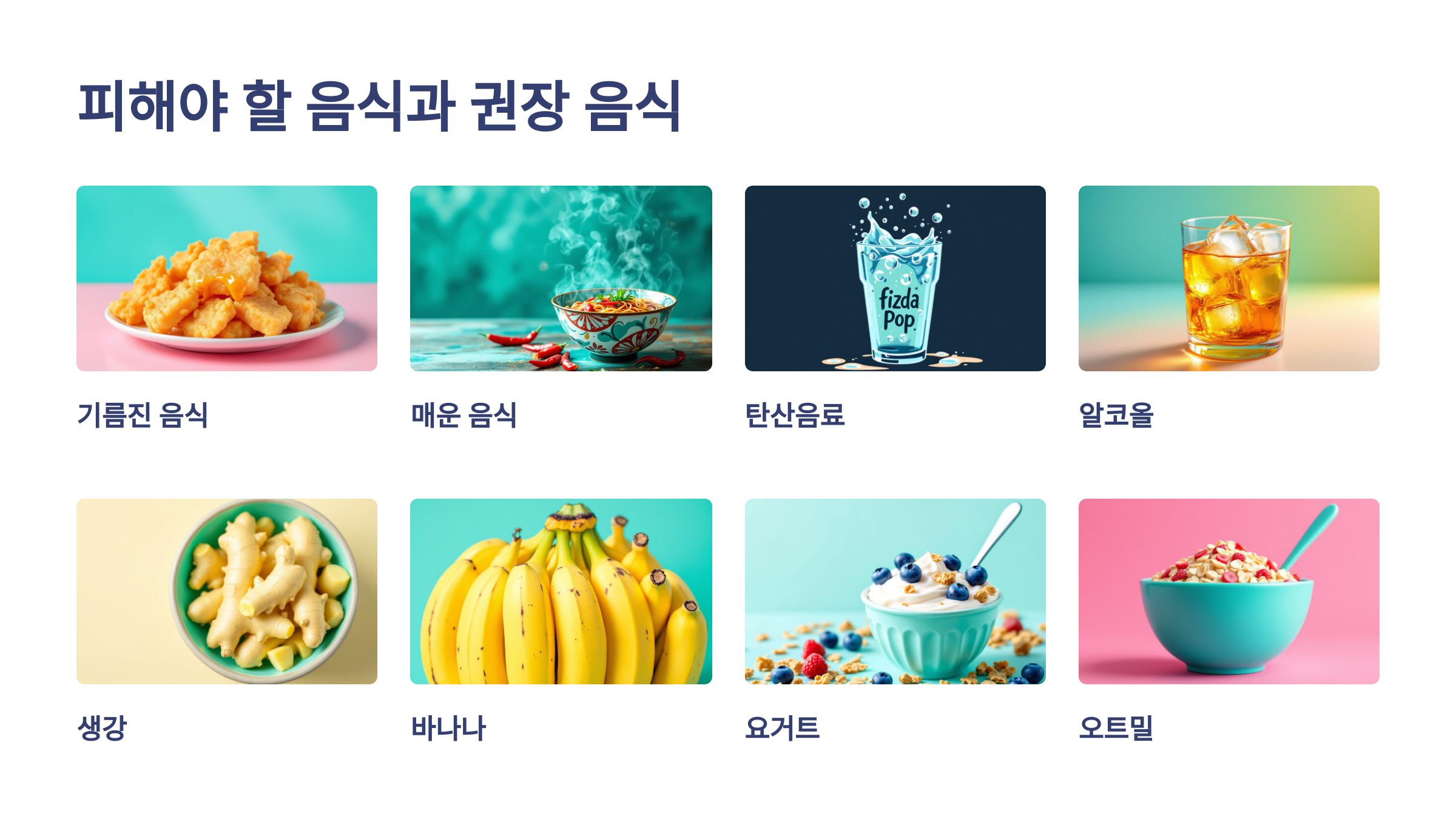 기름진 음식, 매운 음식, 탄산음료, 알코올 등은 소화불량과 위염 모두를 악화시킬 수 있으므로 피하는 것이 좋습니다.