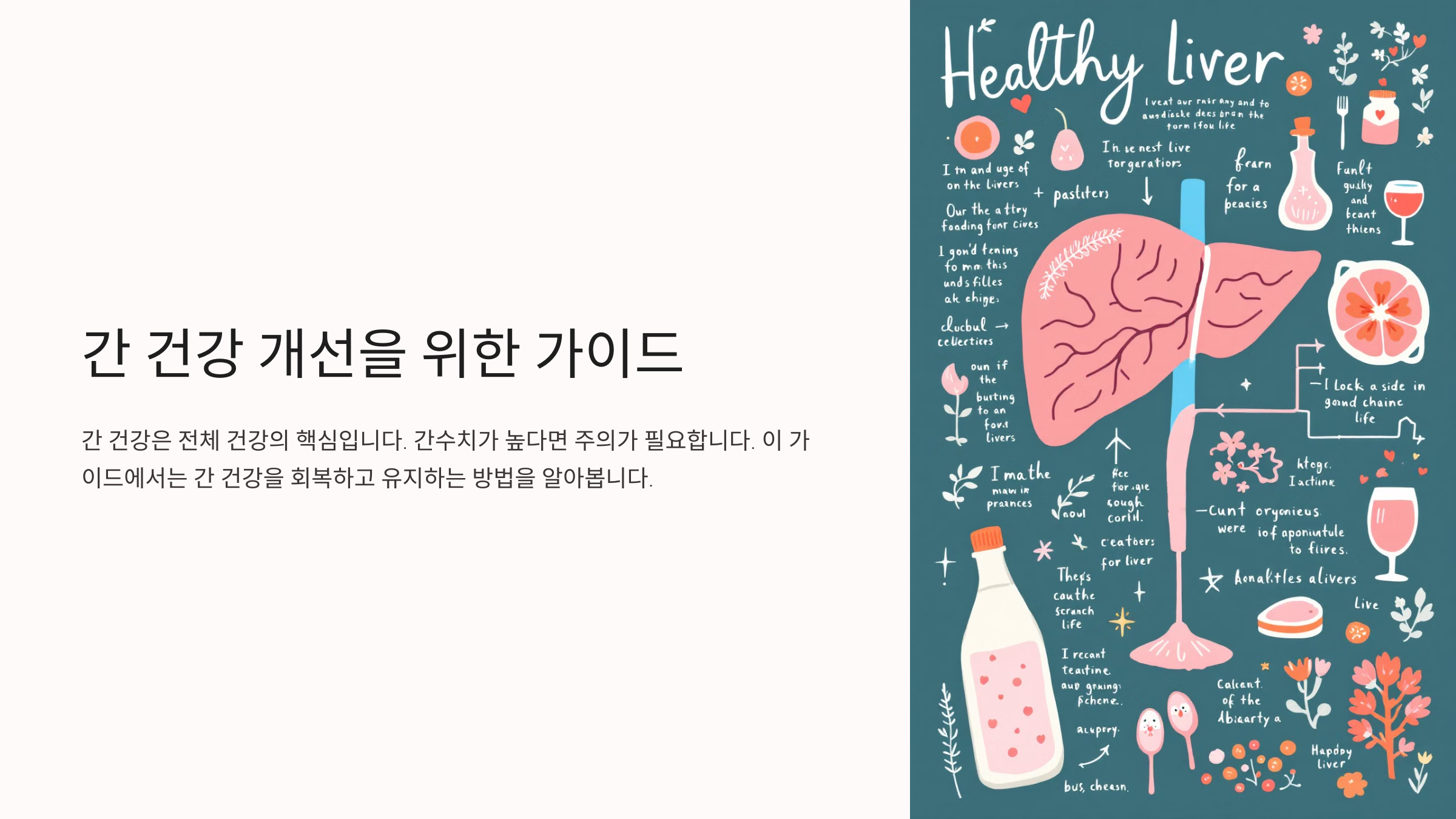 간 건강은 우리 몸 전체의 건강을 좌우할 정도로 중요한 요소입니다. 간수치가 높게 나왔다면, 이는 간에 부담이 있거나 문제가 생겼음을 나타내는 신호일 수 있습니다. 빠른 조치를 통해 간 건강을 회복하고 유지하는 방법을 알아보세요.