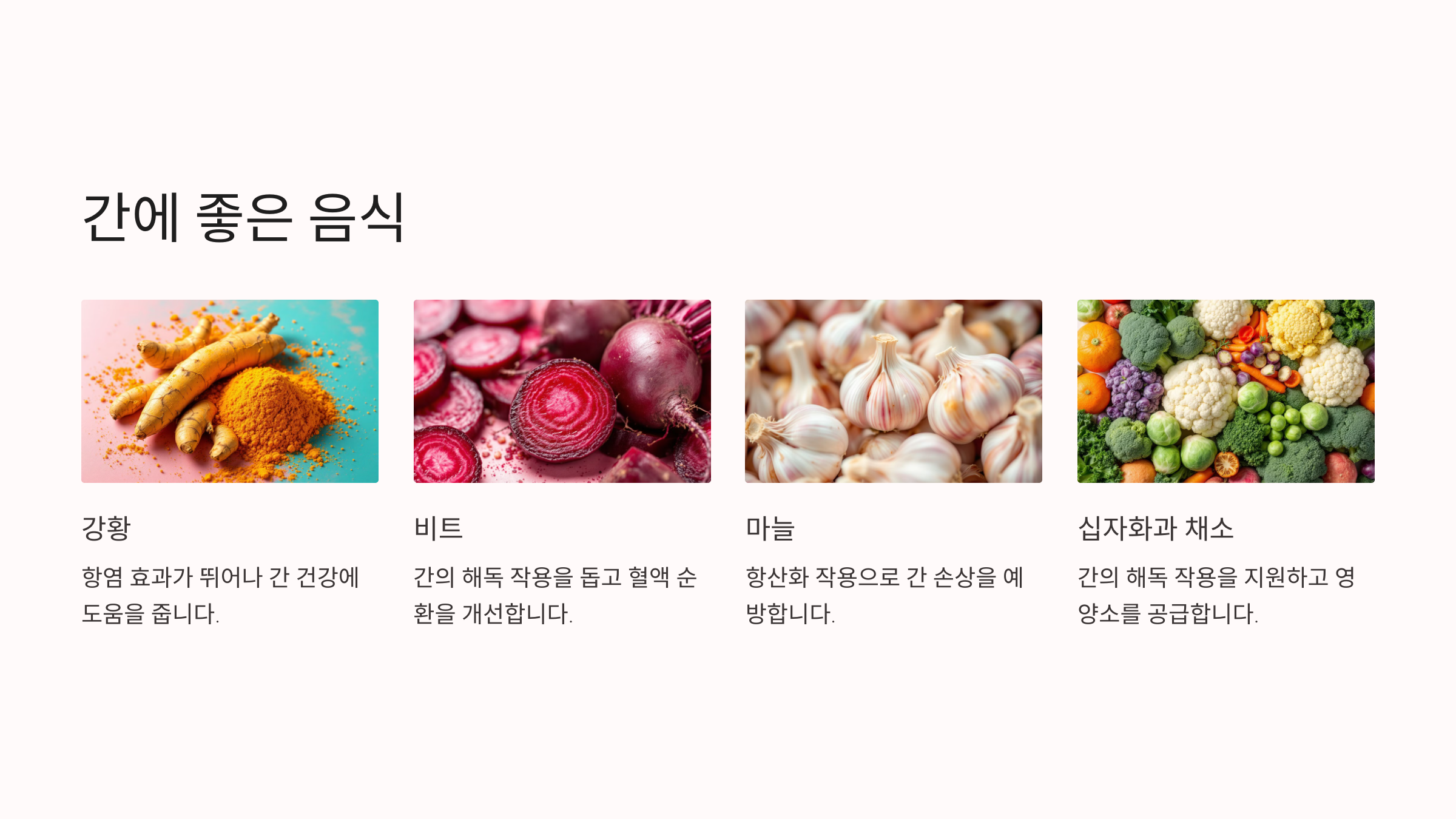 강황, 비트, 마늘, 십자화과 채소 등이 추천됩니다.