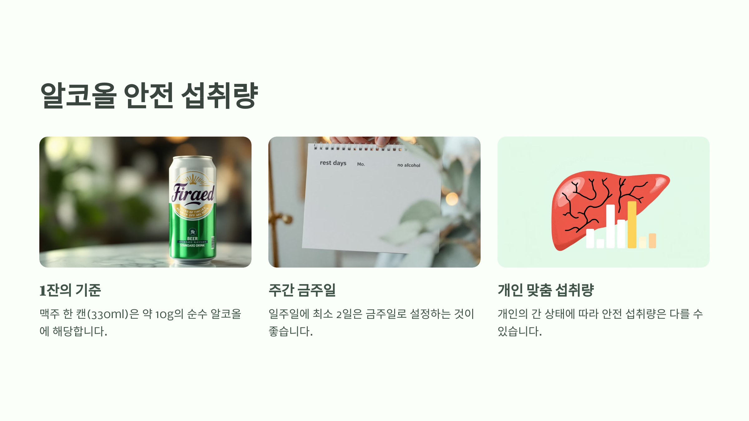 개인의 간 상태에 따라 안전 섭취량은 다를 수 있으므로 의사와 상담하세요.