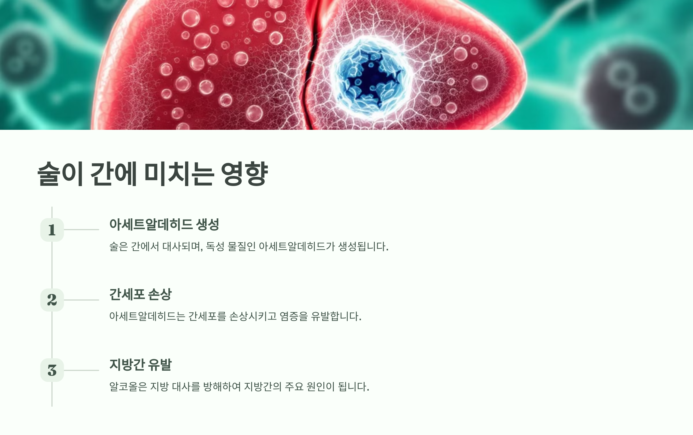 술은 간세포 재생을 방해하여 간의 회복 능력을 저하시킵니다.